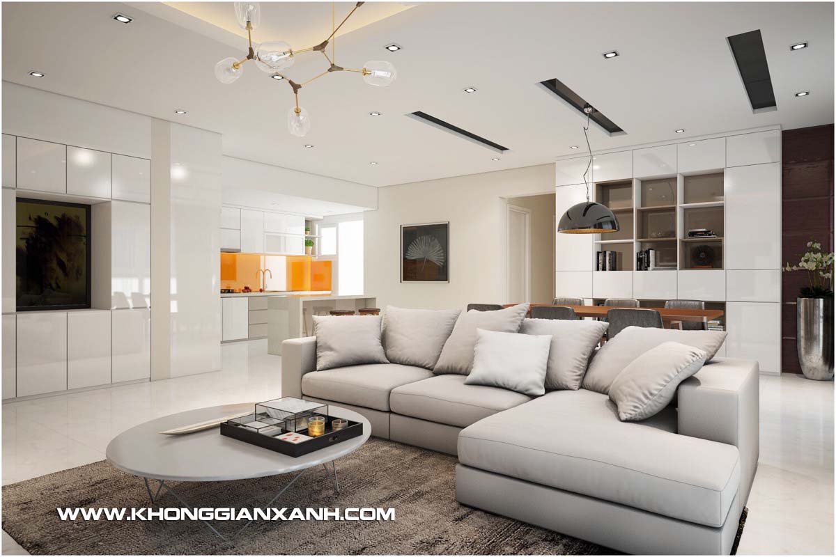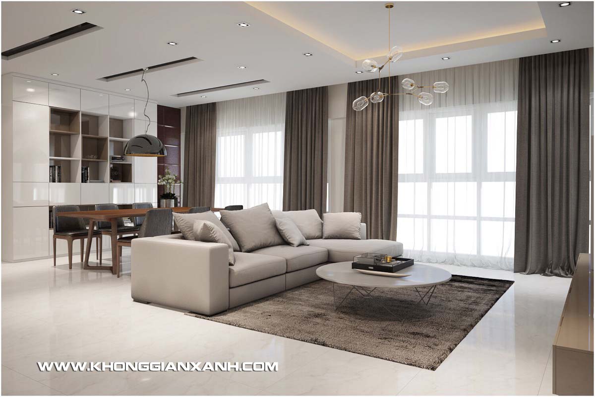 Căn hộ 135 m2 ở Chung cư cao cấp Happy Valley được bàn giao với không gian trống hoàn toàn với view đẹp nhìn ra khu hồ bơi và sân vườn phía dưới. Khi nhận được yêu cầu thiết kế nội thất chung cư Happy Valley từ chủ đầu tư là một khách hàng cũ của Kiến trúc Không Gian Xanh, các yêu cầu về một không gian mở với nội thất hiện đại và tiện nghi luôn được chủ đầu tư đặt trọng tâm, cùng với đó là việc thiết kế để tạo tận dụng ưu thế view nhìn rất đẹp của căn hộ.