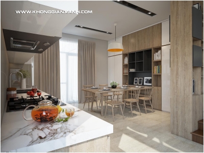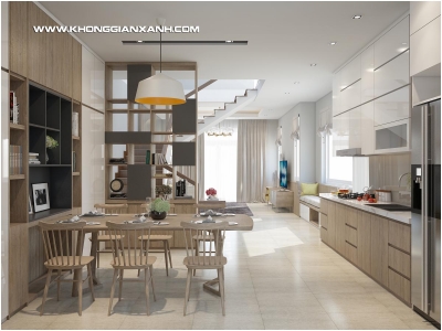 Chủ nhà là anh Đô ở đường Nguyễn Hữu Cảnh – Tp Vũng Tàu, liên hệ phân xưởng gỗ GreenWoods ( chuyên thiết kế và thi công nội thất gỗ ở Tp Vũng Tàu ) của Kiến trúc Không Gian Xanh với mục tiêu ban đầu chỉ là đóng 1 số thiết bị nội thất trên khung nhà đang hoàn thiện của anh. Nhưng với sự tư vấn của không chỉ là thợ gỗ, mà còn là đội ngũ kiến trúc sư chuyên nghiệp nhiều kinh nghiệm triển khai thiết kế và thi công nội thất ở Tp Vũng Tàu và cả ở Tp Hồ Chí Minh, dự tính ban đầu của anh đã nhanh chóng thay đổi để chuyển thành 1 không gian nội thất chuyên nghiệp được thiết kế bài bản.