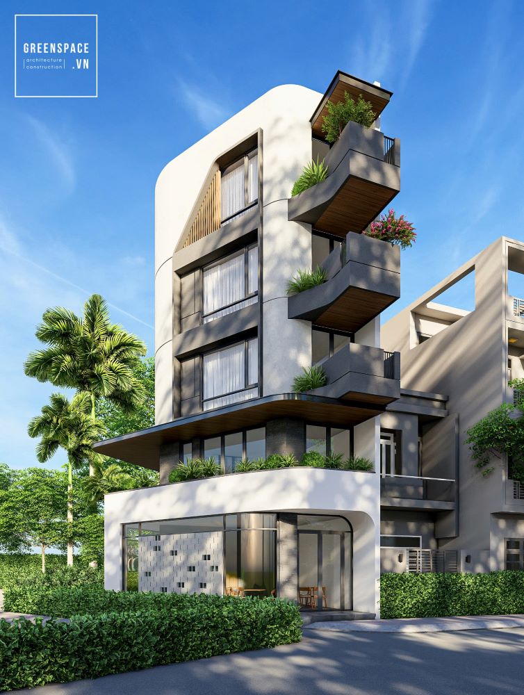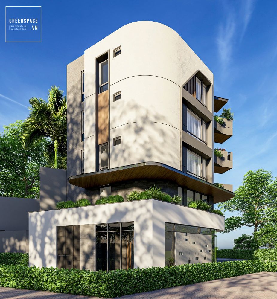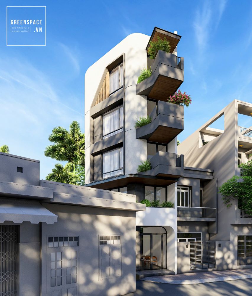 Dự án H’House do KGX thiết kế mang phong cách hiện đại. Công trình nổi bật với đường cong mềm mại. Mặt tiền kính lớn giúp không gian tràn ngập ánh sáng. Tầng trệt được bố trí kinh doanh. Các tầng trên là khu vực sinh hoạt tiện nghi. Sự kết hợp hài hòa giữa kinh doanh và ở. Màu sắc trung tính tạo cảm giác sang trọng. Ban công xanh mát tăng sự gần gũi thiên nhiên. H’House thể hiện sự sáng tạo và tinh tế của KGX. Đây là bài toán xây nhà trên đất tam giác mà KGX đã đưa ra đáp án cho gia chủ.