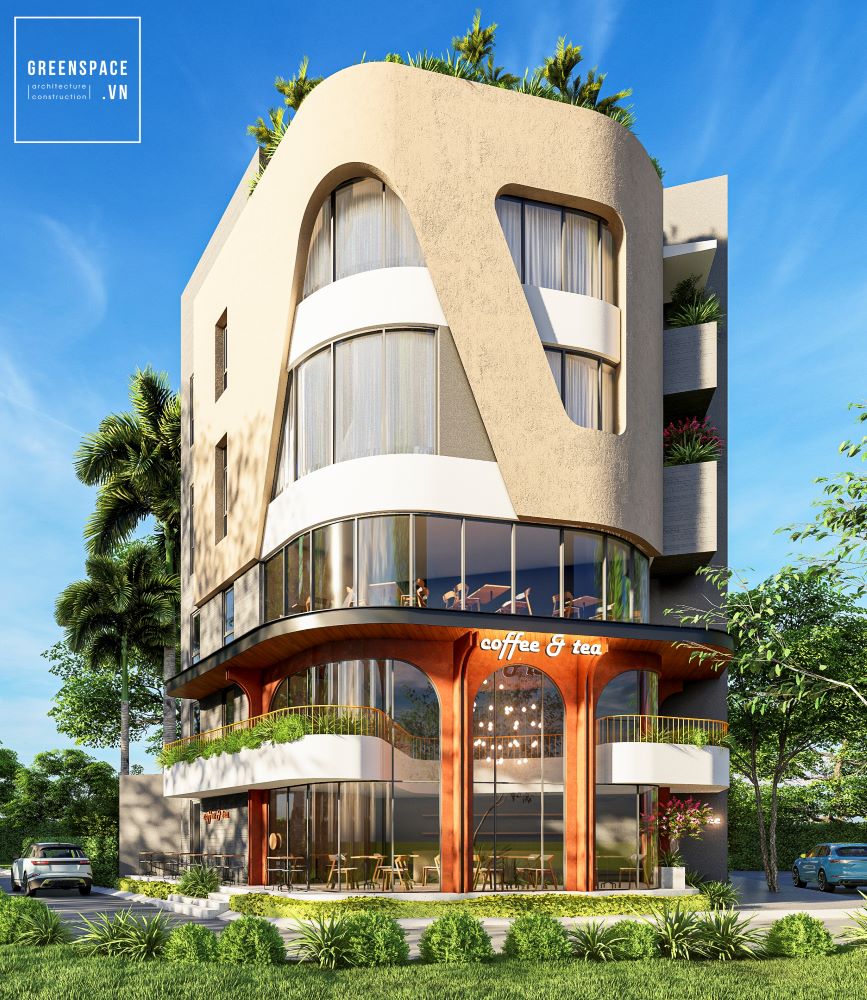 Dự án H’House do KGX thiết kế mang phong cách hiện đại. Công trình nổi bật với đường cong mềm mại. Mặt tiền kính lớn giúp không gian tràn ngập ánh sáng. Tầng trệt được bố trí quán cafe ấm cúng. Các tầng trên là khu vực sinh hoạt tiện nghi. Sự kết hợp hài hòa giữa kinh doanh và ở. Màu sắc trung tính tạo cảm giác sang trọng. Ban công xanh mát tăng sự gần gũi thiên nhiên. H’House thể hiện sự sáng tạo và tinh tế của KGX.