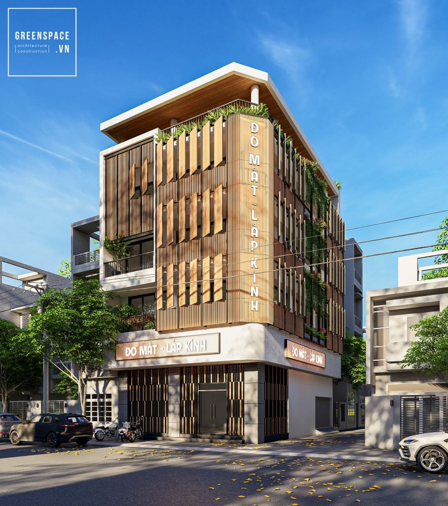 Nhà D’House mang phong cách hiện đại và tinh tế. Mặt tiền sử dụng lam gỗ đứng tạo nên vẻ đẹp sang trọng. Các tầng dưới được bố trí làm cửa hàng đo mắt và lắp kính tiện lợi. Các tầng trên là không gian sinh hoạt ấm cúng của gia đình. Thiết kế mở giúp đón ánh sáng tự nhiên tối đa. Hệ thống kính lớn giúp không gian luôn sáng và thoáng. Ban công xanh tạo điểm nhấn tự nhiên và thoải mái. Mái bằng kết hợp sân thượng trồng cây giúp thư giãn. Tông màu nâu – trắng mang lại cảm giác ấm áp và thanh lịch. Hình khối kiến trúc mạnh mẽ, bố cục hài hòa, cân đối. Thiết kế tối giản nhưng vẫn toát lên nét hiện đại. Mặt tiền hướng ra phố giúp thuận tiện kinh doanh. Không gian sống được tách biệt hợp lý với khu buôn bán. D’House là mẫu nhà lý tưởng cho mô hình nhà ở kết hợp kinh doanh tại đô thị.