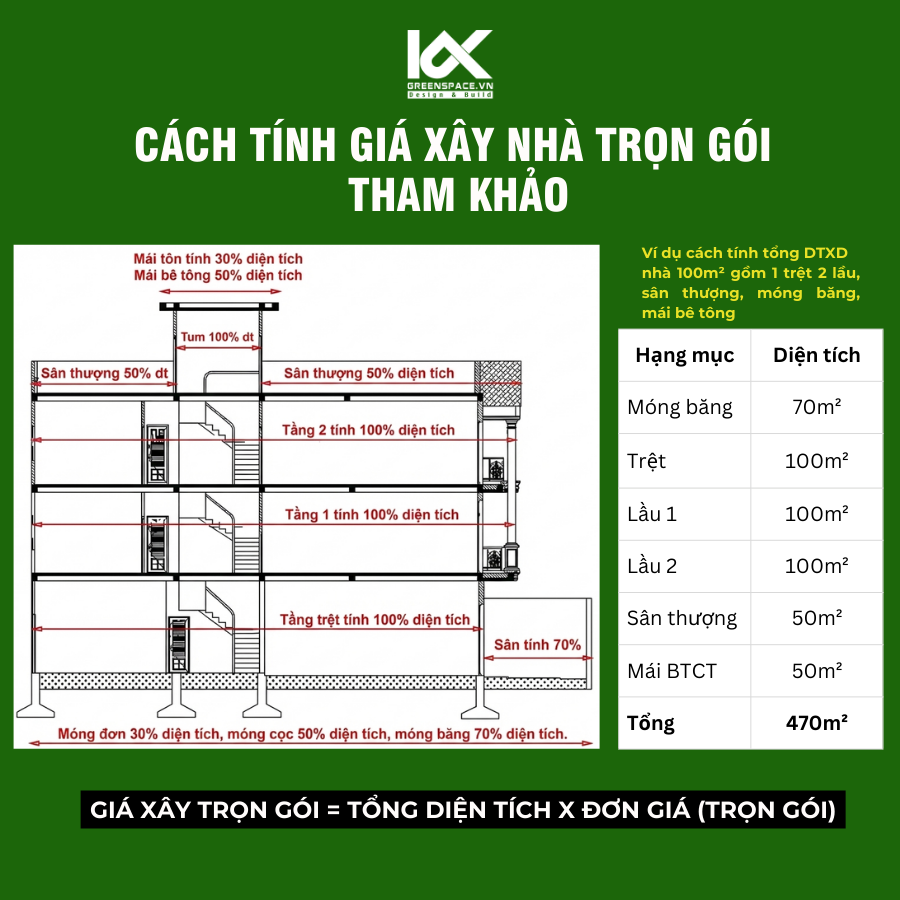 Dưới đây là bảng minh hoa cách tính giá xây nhà trọn gói của KGX: