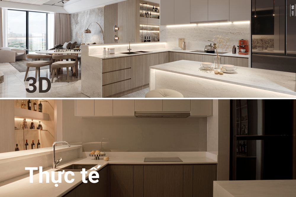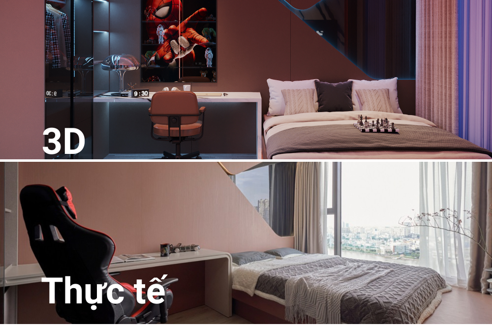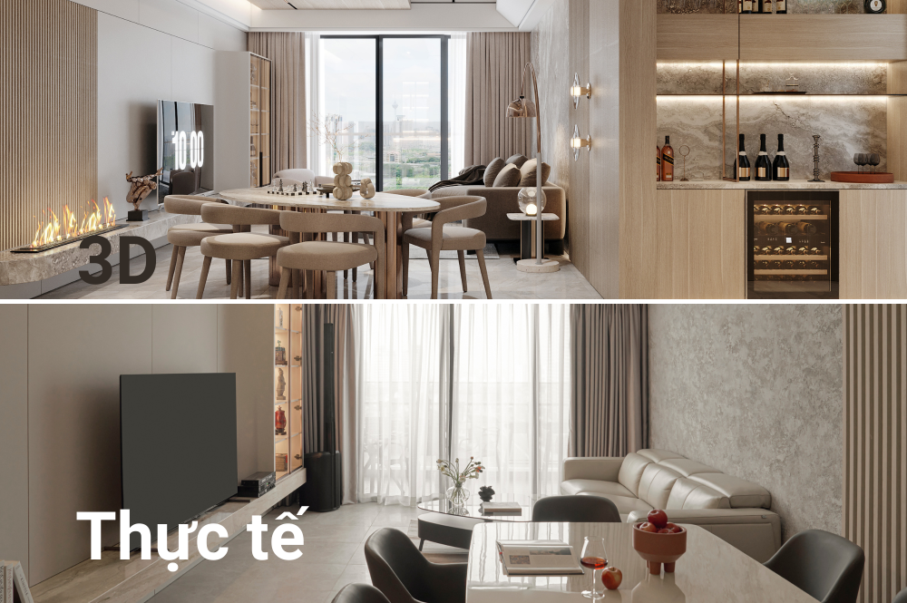 Hình ảnh thi công nội thất thực tế đúng với bản vẽ 3D của xưởng KGX