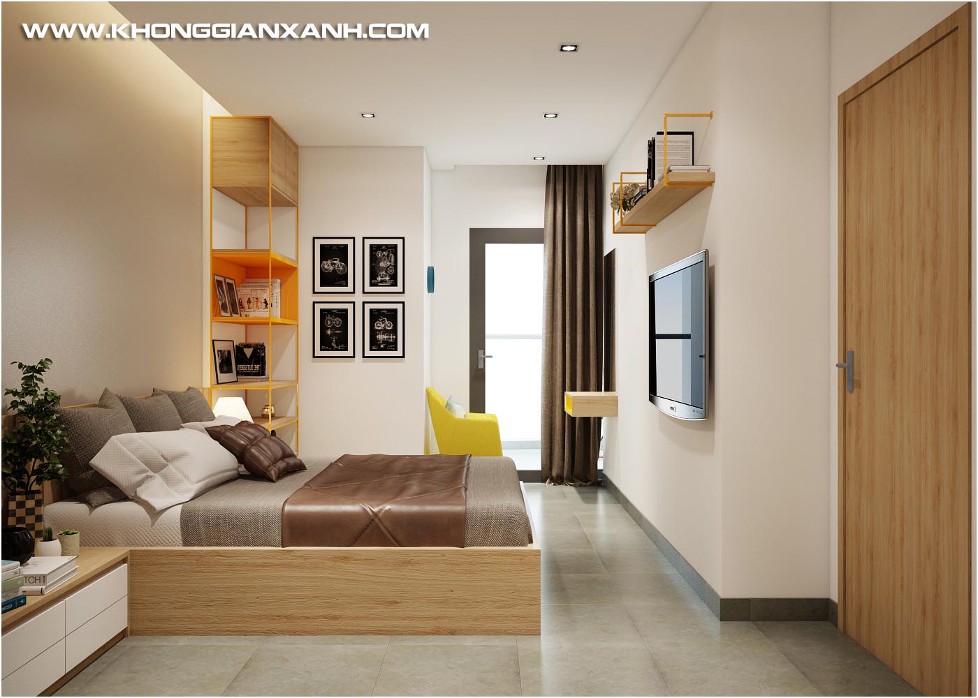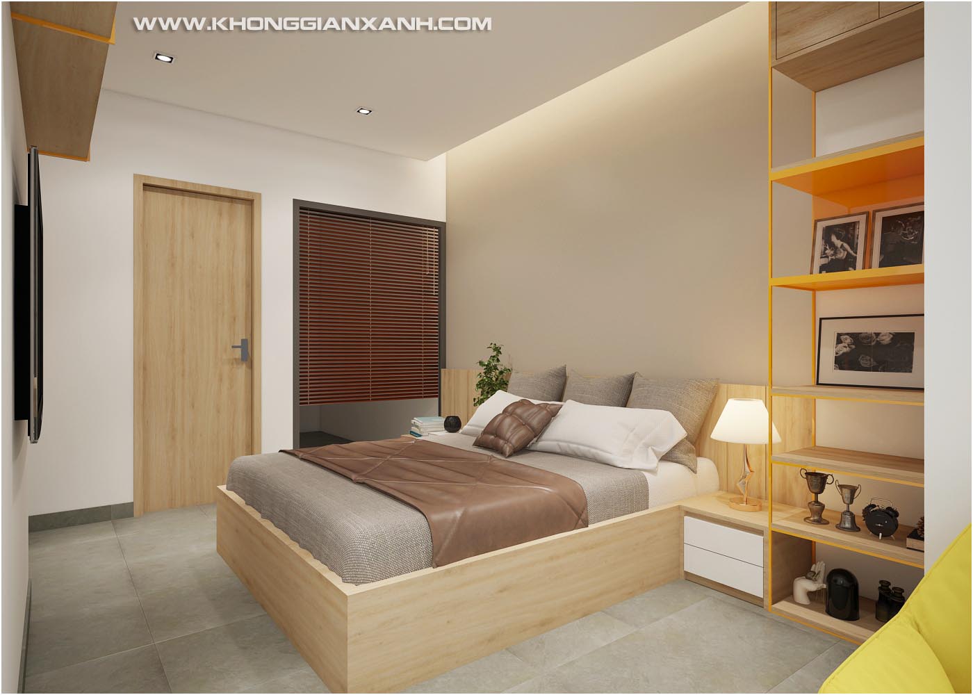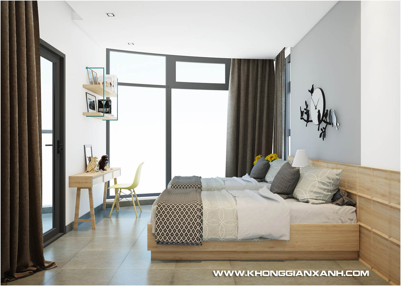 Với diện tích khoảng 100m2 và bao gồm 3 phòng ngủ, thiết kế sẵn có theo tiêu chuẩn căn hộ du lịch nên đã có một số thiết bị nội thất được lắp đặt sẳn có khi chủ đầu tư dự án bàn giao căn hộ, nên sau khi trao đổi và tư vấn cùng các kiến trúc sư của Kiến trúc Không Gian Xanh, anh đồng ý phương án vẫn tận dụng các vật dụng sẵn có và điều chỉnh bố trí thêm nội thất để đạt các tiêu chí mong muốn sử dụng của anh và gia đình.