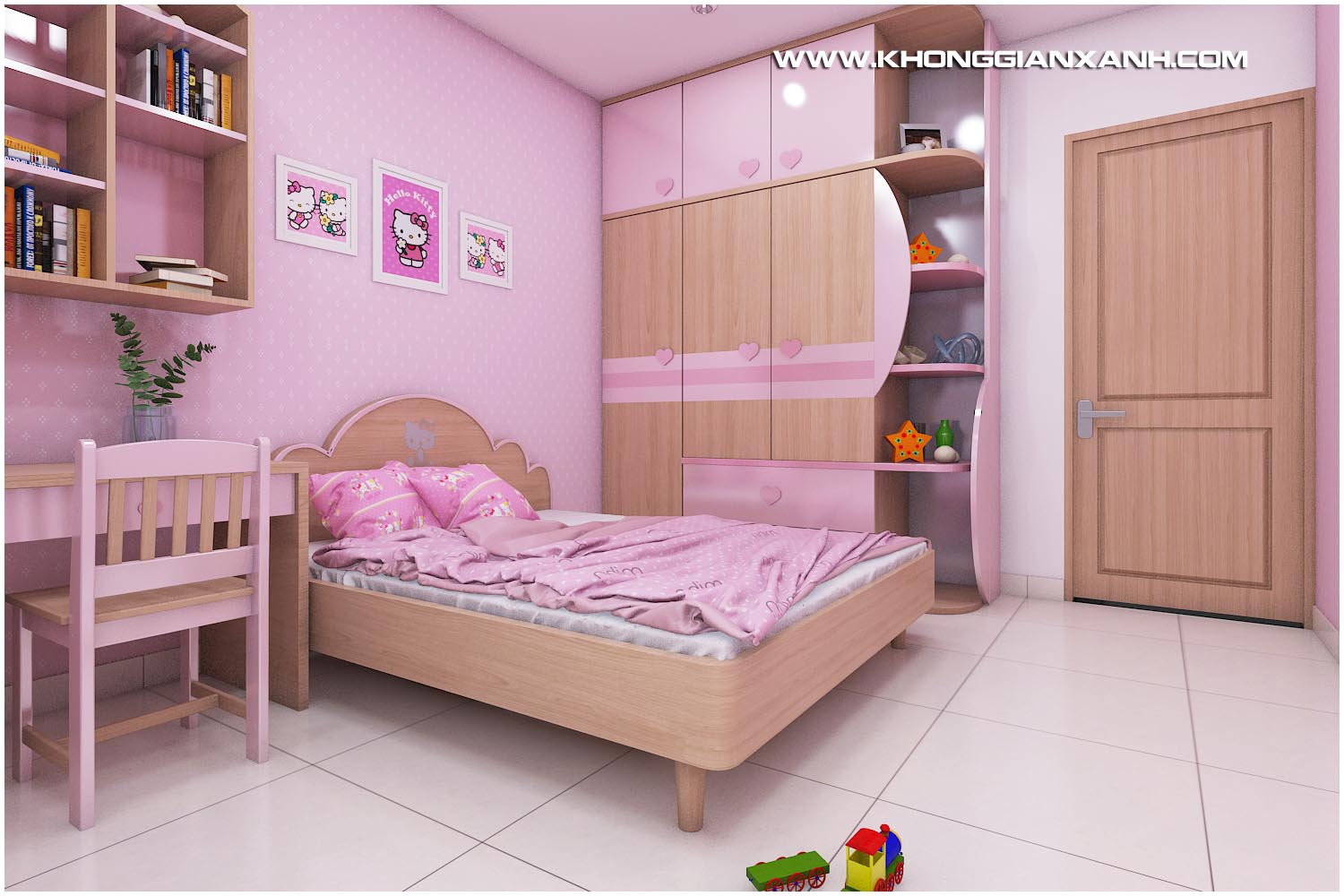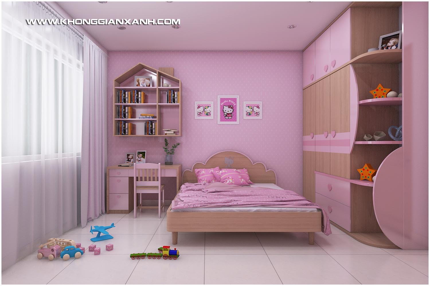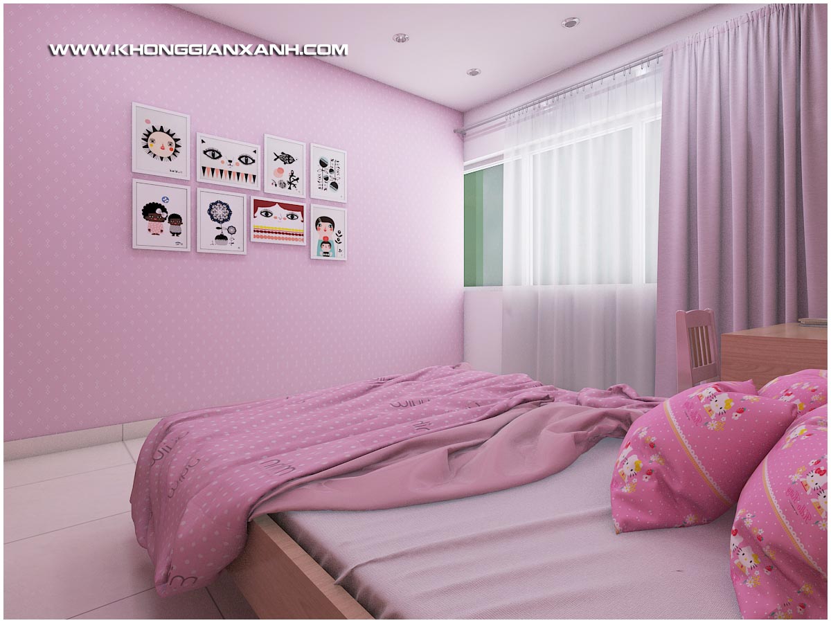 Phòng ngủ bé gái với ton hồng nhẹ nhàng nữ tính