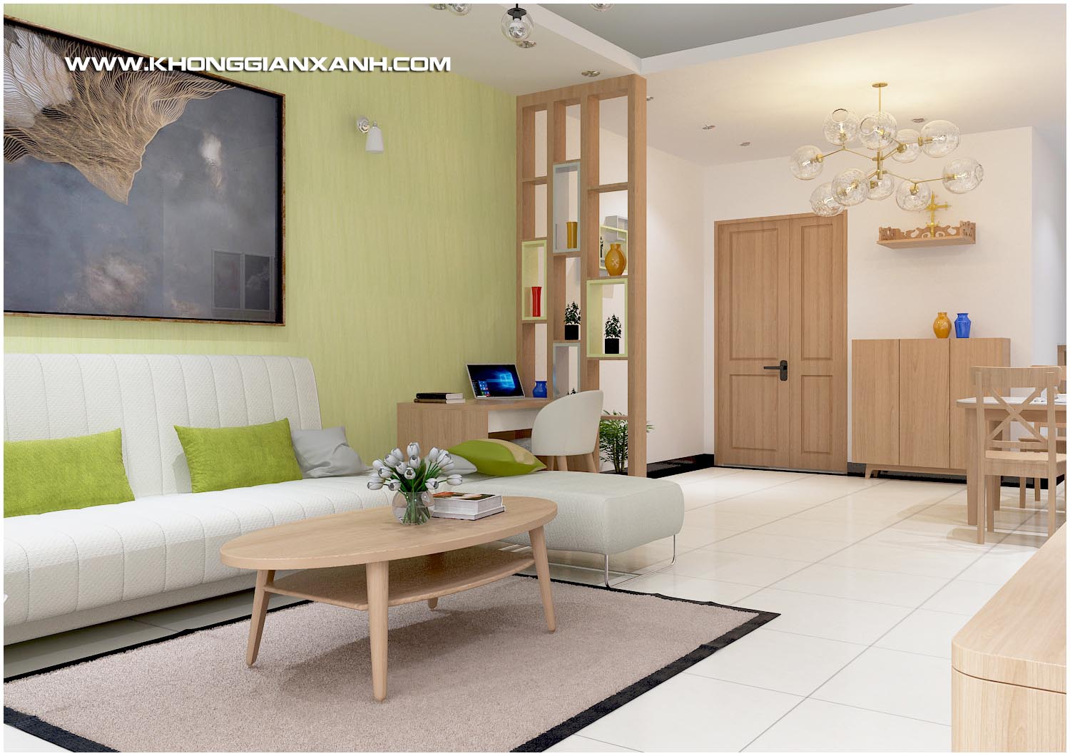 Nhận được yều cầu Thiết kế nội thất căn hộ Vũng Tàu của chị, Kiến trúc Không Gian Xanh qua trao đổi các ý tưởng và các mong muốn của gia chủ dành cho công trình của mình đã triển khai lên phương án sơ bộ trình chủ đầu tư. Với phong cách nhẹ nhàng, tạo nét sinh động cho căn hộ, các thiết kế sử dụng nhiều màu sắc hài hòa, sử dụng các chất liệu gỗ công nghiệp hiện đại và tiện sử dụng.