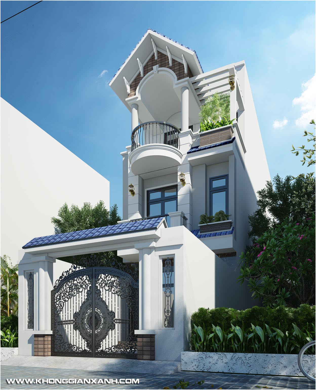 Kiến trúc ngôi nhà gồm 3 tầng mang nét nhẹ nhàng cổ điển kết hợp công năng hiện đại. Các mái ngói điểm tô nhẹ nhàng cho mặt tiền ngôi nhà, giúp dự án Thiết kế nhà phố Vũng Tàu do anh Cầu làm chủ đầu tư trở nên gần gũi và thân thiện.