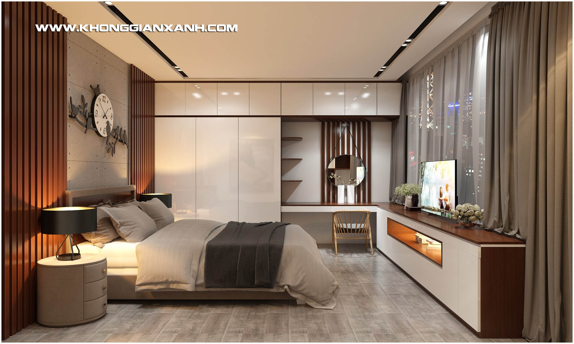 Phòng ngủ ấm cúng sinh động với nội thất trầm và view thoáng sẵn sàng cho mỗi sáng mai
