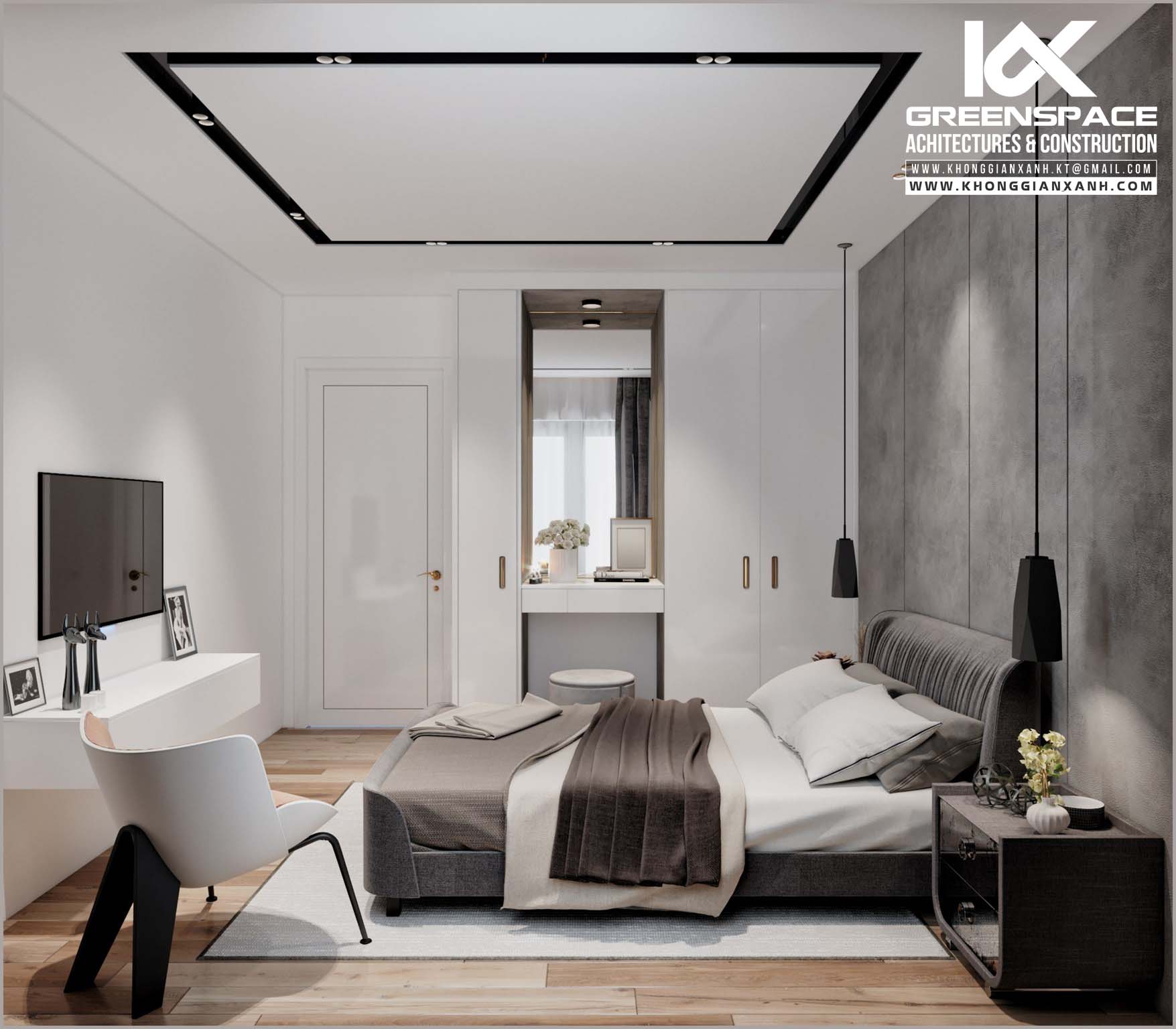 Bếp ăn đơn giản nhưng vẫn sang trọng Hồ bơi xanh mát bên cạnh biệt thự vừa để thư giãn vừa tạo cảnh quan Sảnh chờ sang trọng Phòng ngủ tạo ấn tượng với 2 tông màu tương phản