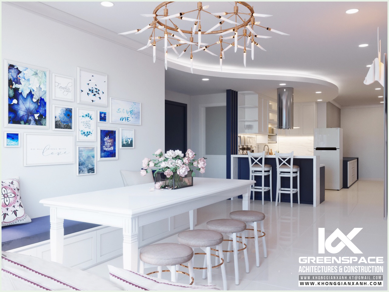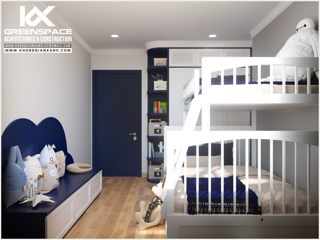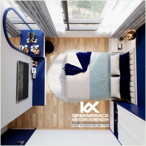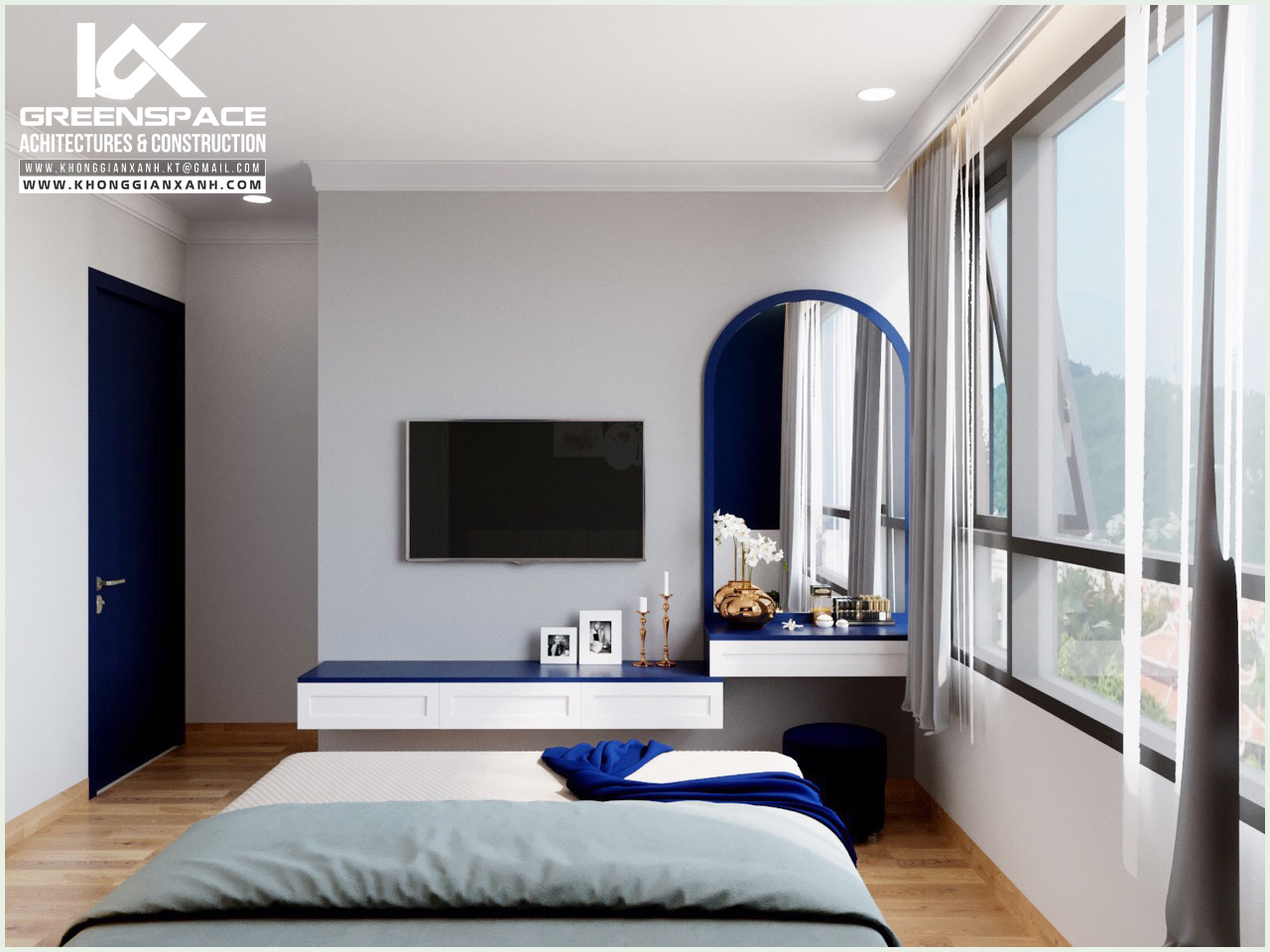 Phong cách thiết kế: hiện đại. Màu xanh cobalt làm chủ đạo.