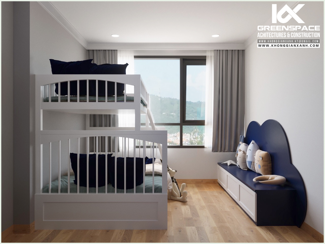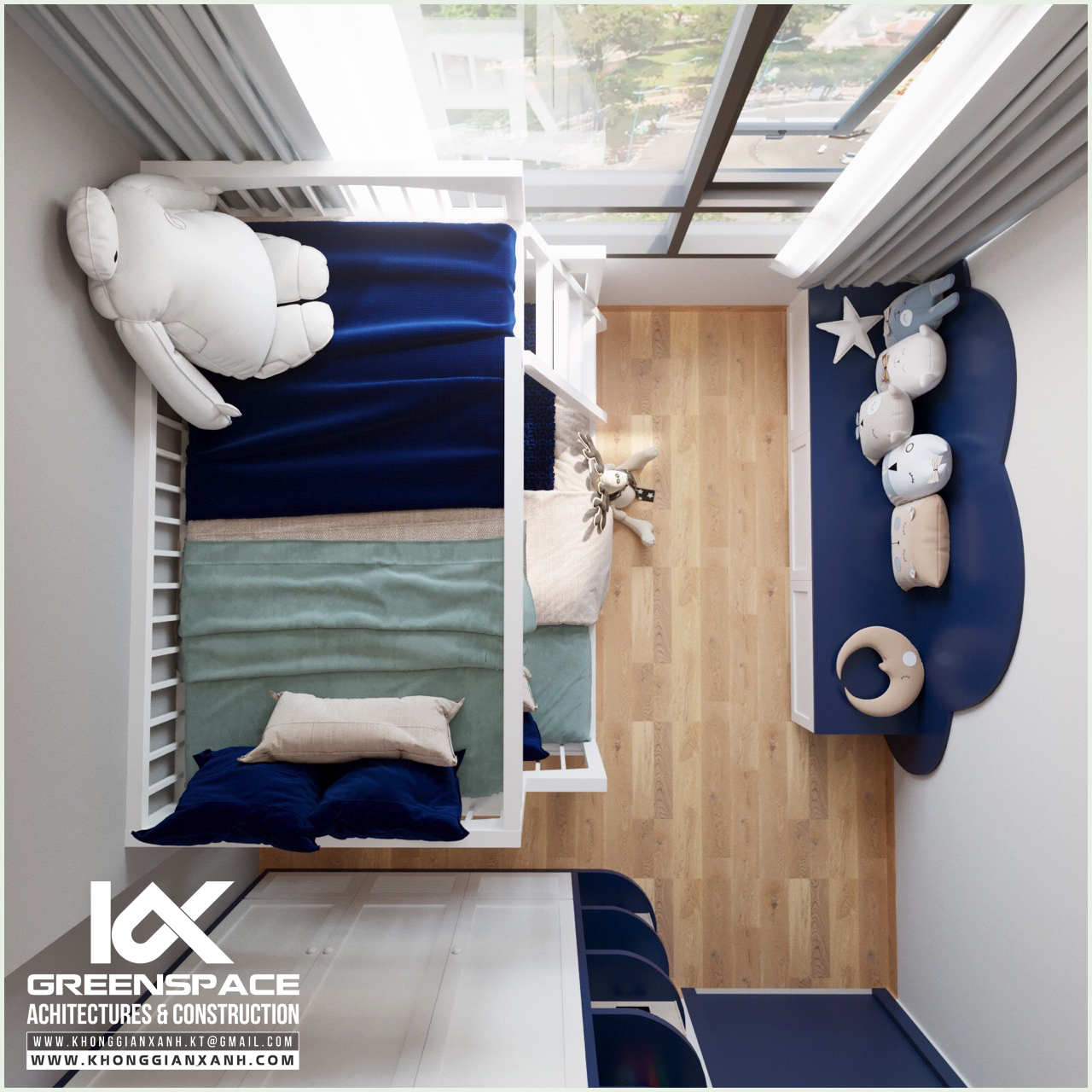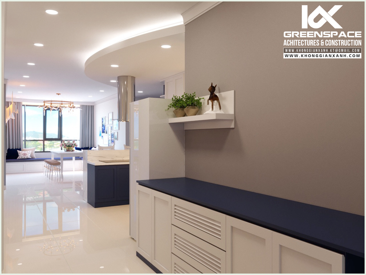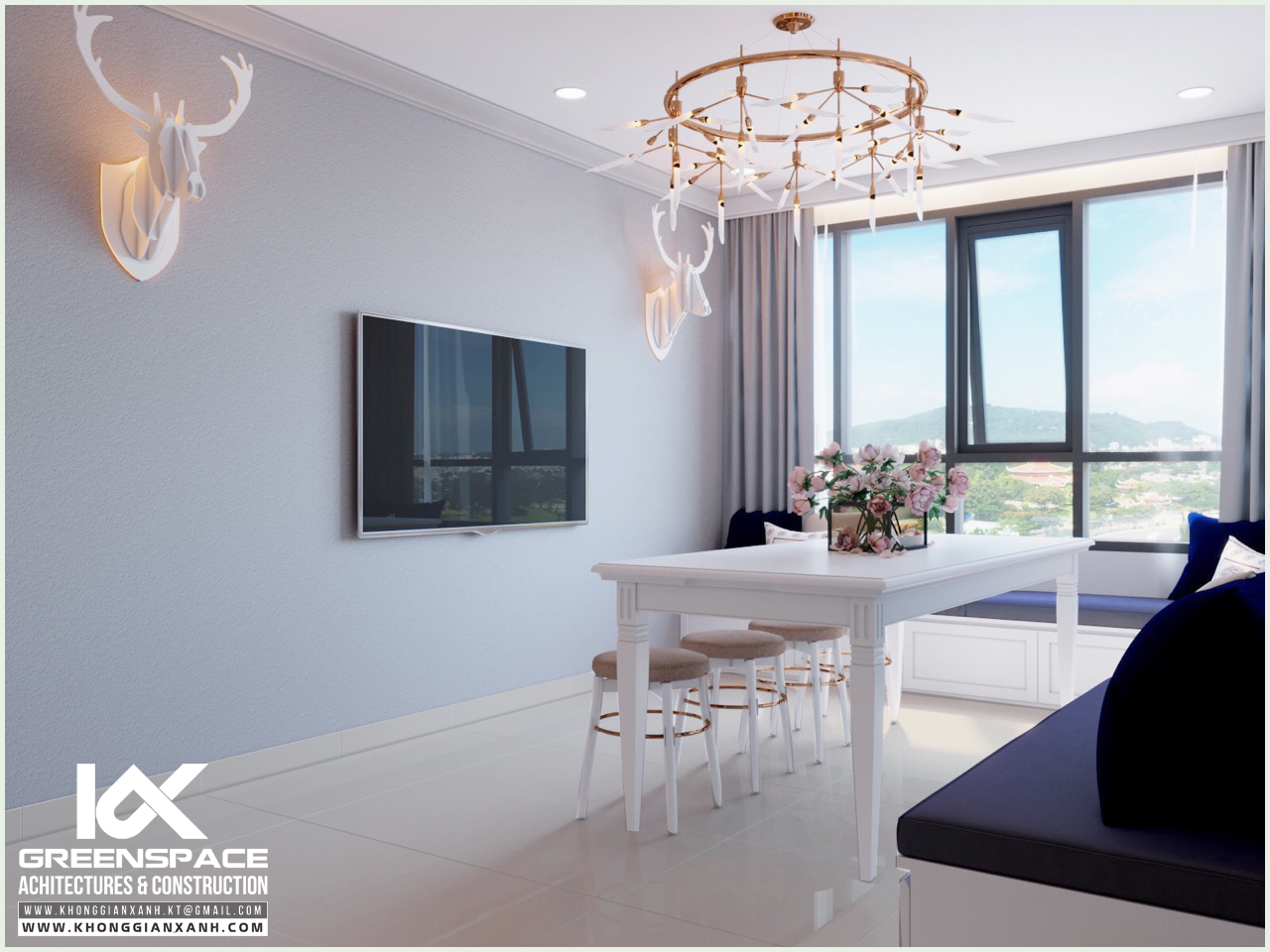 Phong cách thiết kế: hiện đại. Màu xanh cobalt làm chủ đạo.