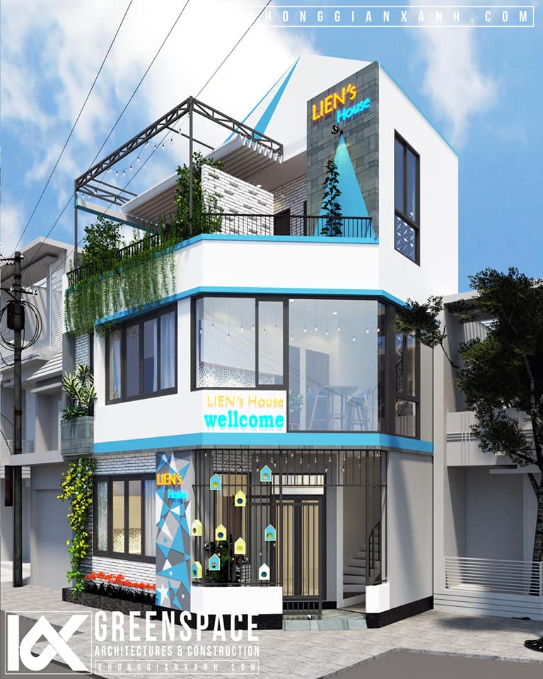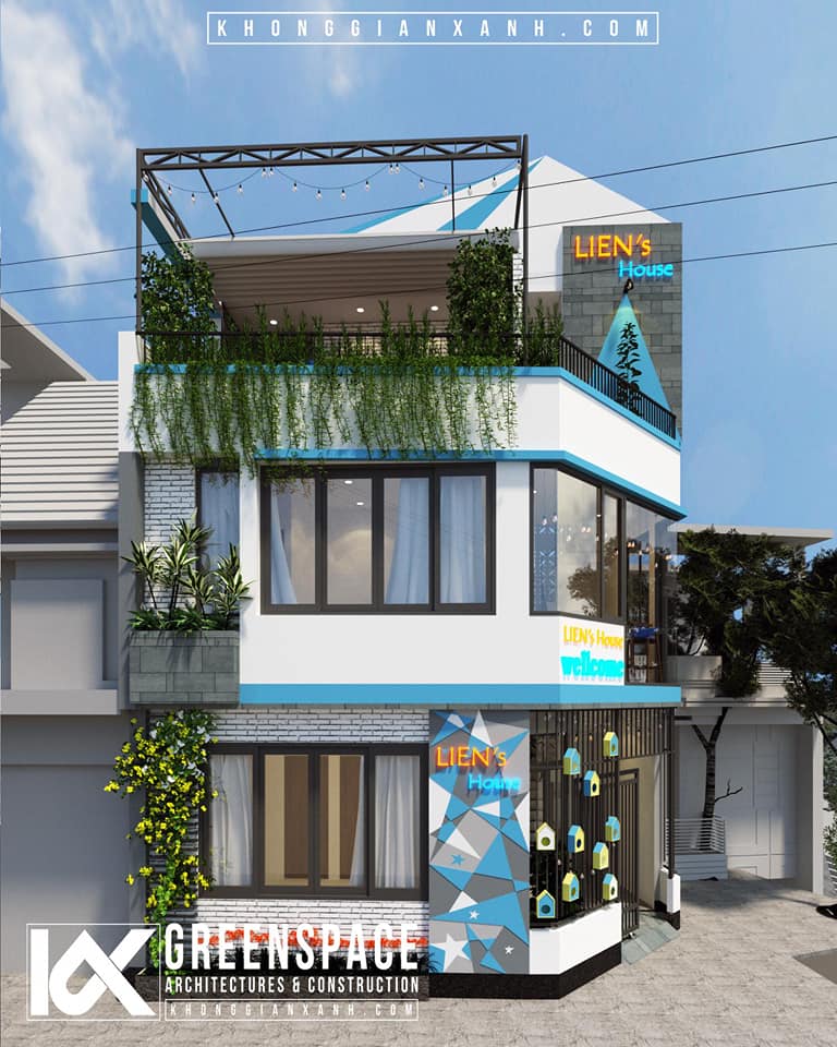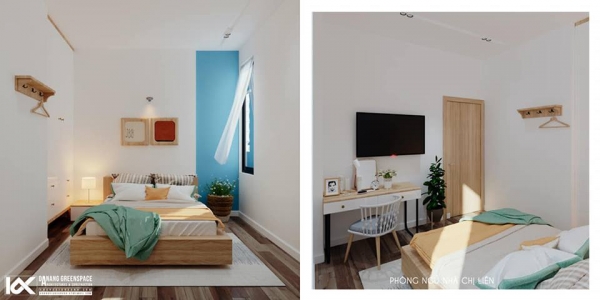 Tông xanh trắng kết hợp với các màu sắc và cách trang trí ấn tượng