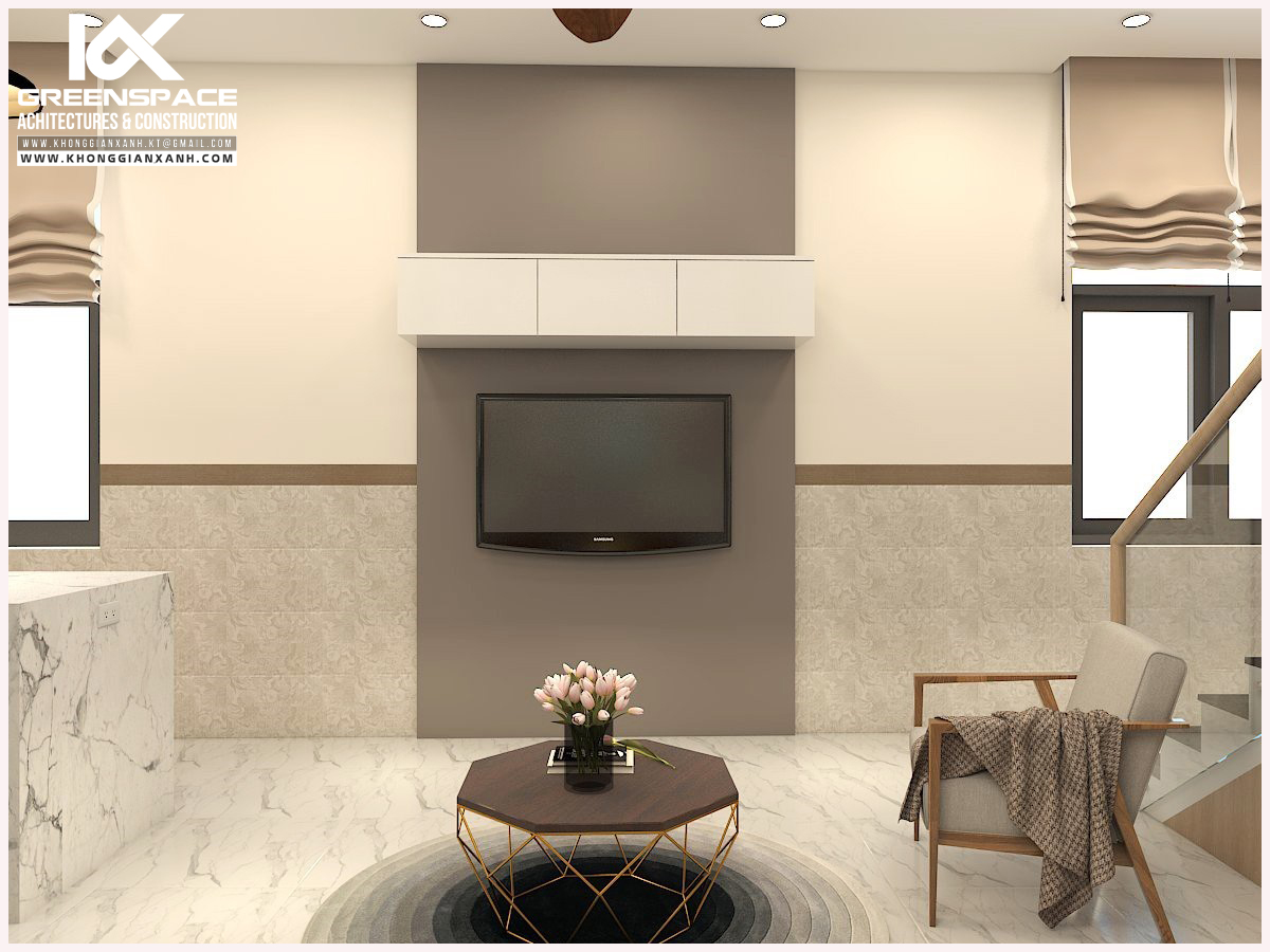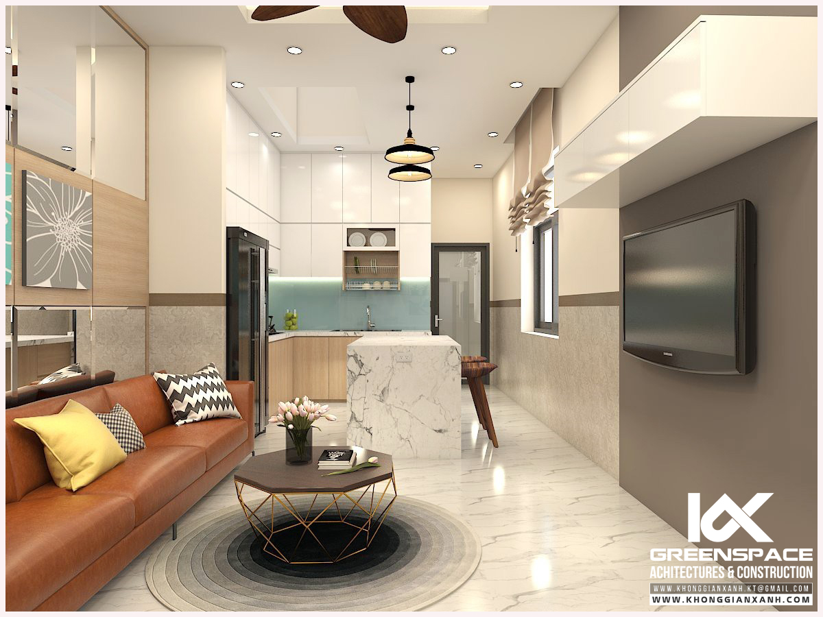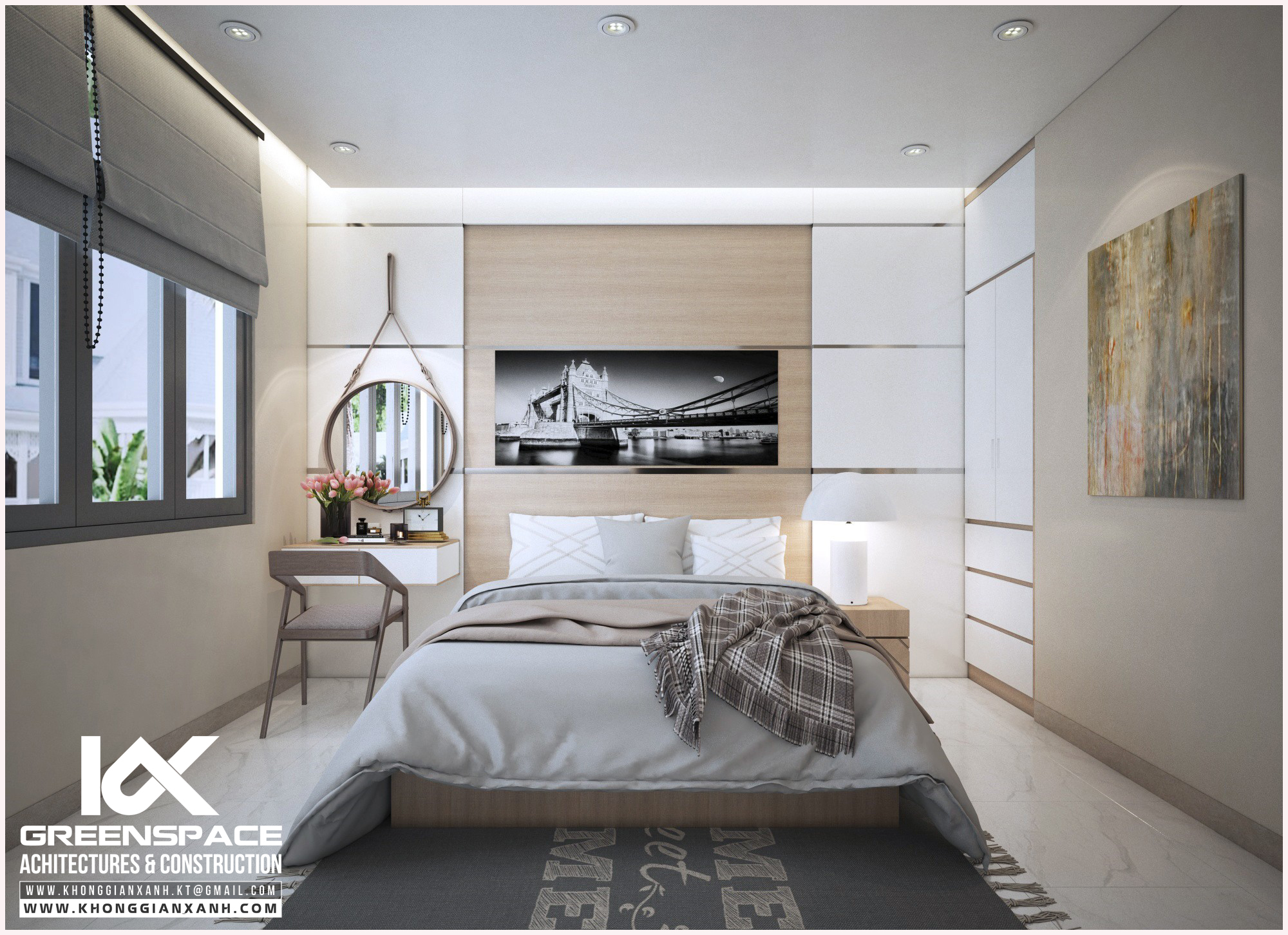 Với tiêu chí giải quyết bài toán về hình thức thẩm mỹ và không gian sử dụng, các kiến trúc sư trẻ của Kiến trúc Không Gian Xanh Tp Vũng Tàu áp dụng phong cách thiết kế hiện đại, sử dụng tông màu sáng làm chủ đạo để tạo cảm giác rộng thoáng cho diện tích thực tế hạn chế, đồ nội thất tinh tế tối giản, đủ tiện nghi nhưng không chiếm quá nhiều không gian.