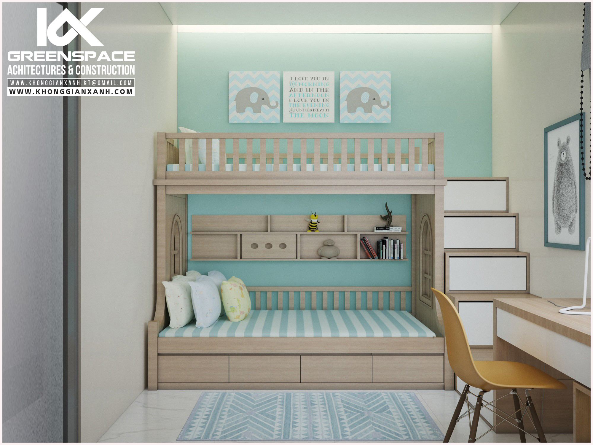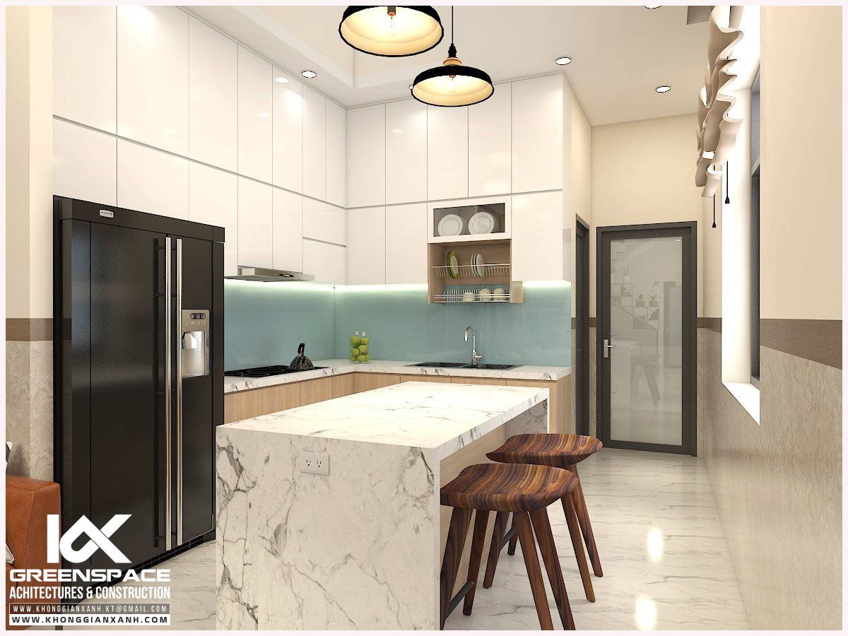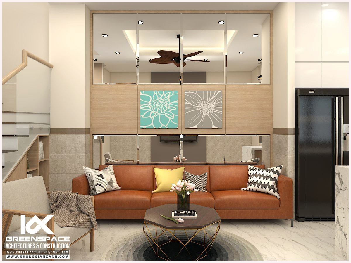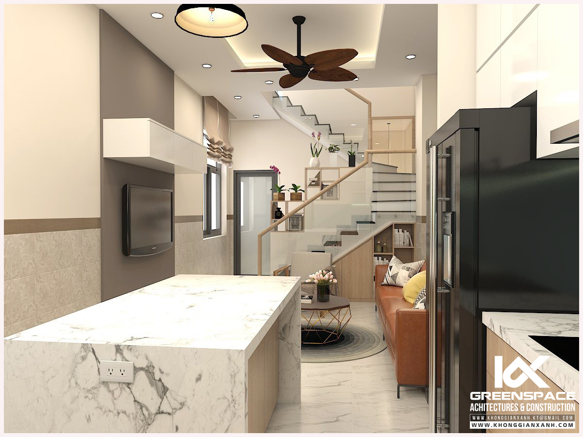 Với tiêu chí giải quyết bài toán về hình thức thẩm mỹ và không gian sử dụng, các kiến trúc sư trẻ của Kiến trúc Không Gian Xanh Tp Vũng Tàu áp dụng phong cách thiết kế hiện đại, sử dụng tông màu sáng làm chủ đạo để tạo cảm giác rộng thoáng cho diện tích thực tế hạn chế, đồ nội thất tinh tế tối giản, đủ tiện nghi nhưng không chiếm quá nhiều không gian.