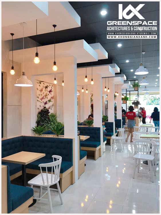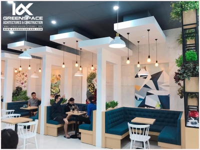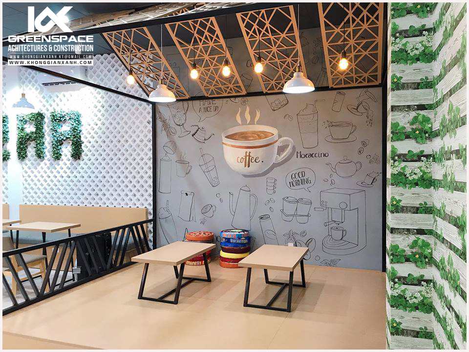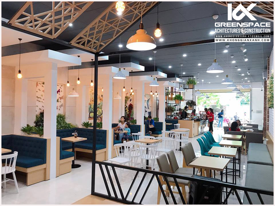 Không gian quán hút mắt giới trẻ bởi một không gian và màu sắc rất teen, nơi đây tràn ngập không gian xanh và cảm giác tươi mát. Bên trong quán được thiết kế như kiểu ngoài trời, đảm bảo tính mở, nhưng vẫn có không gian riêng tư cho khách. Không có nhiều ánh sáng tự nhiên nên tập trung hệ thống ánh sáng trắng từ đèn trang trí, vừa giúp tôn lên vẻ đẹp của đồ nội thất, vừa mang đến cảm giác thư thái, dịu êm cho thực khách.