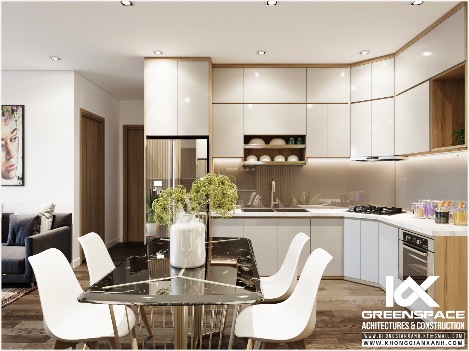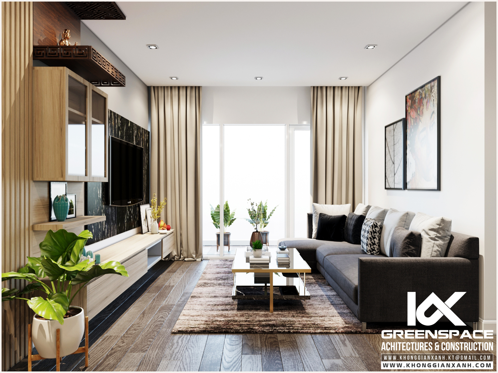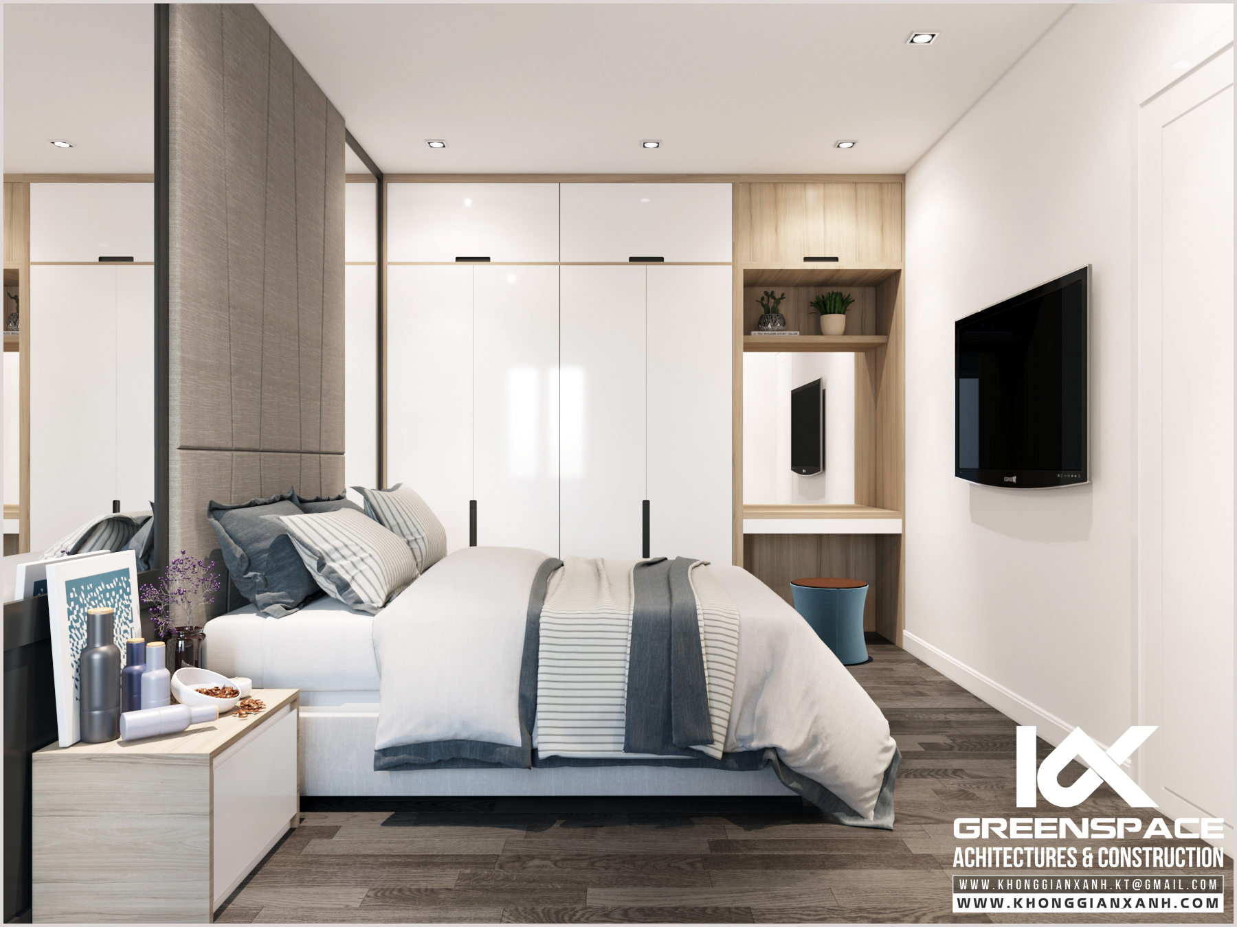 Phong cách thiết kế: đơn giản, hiện đại. Tông màu chủ đạo: xám, trắng