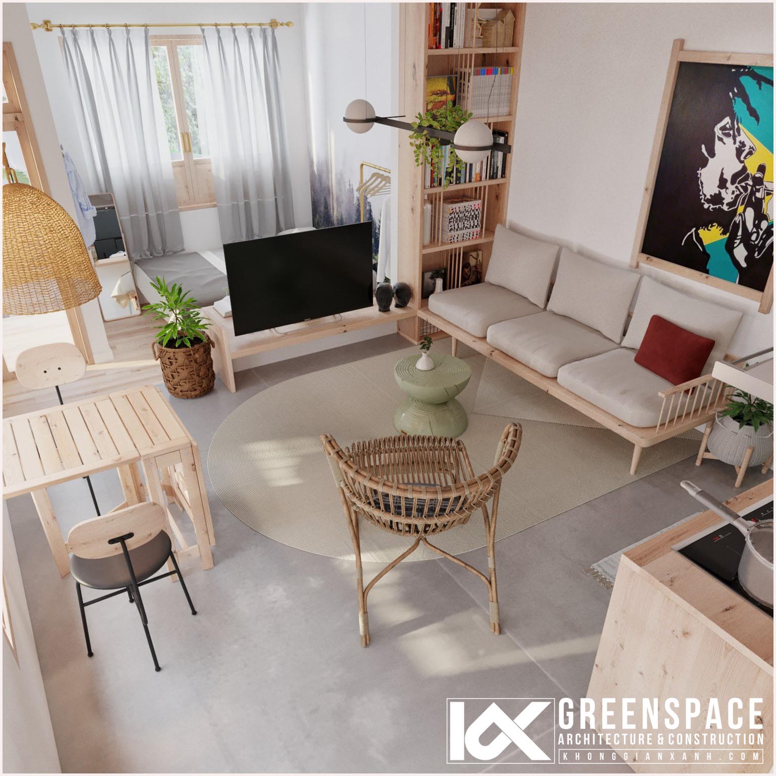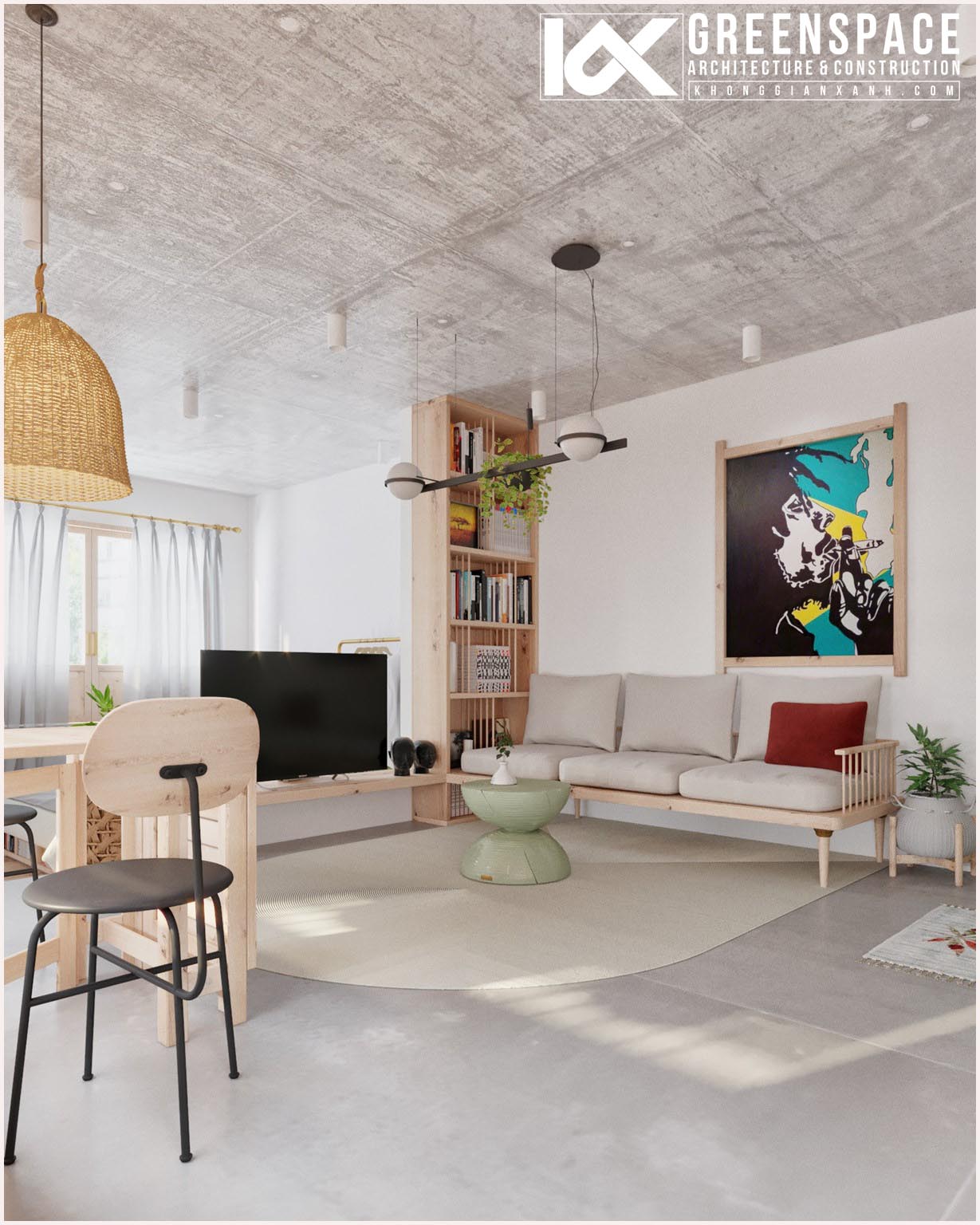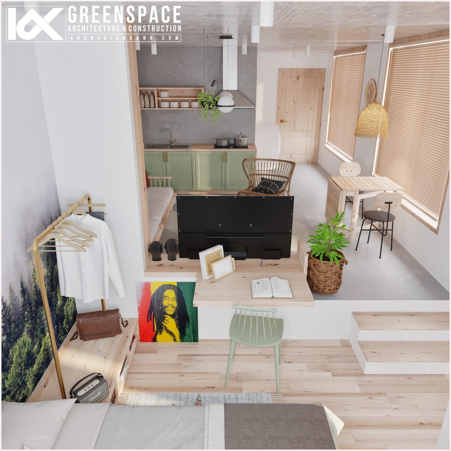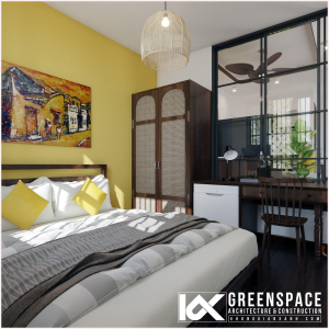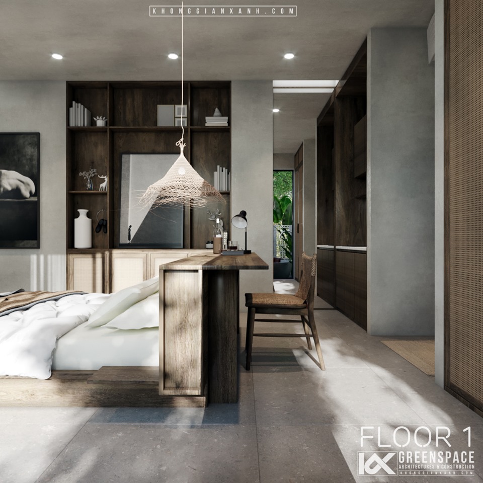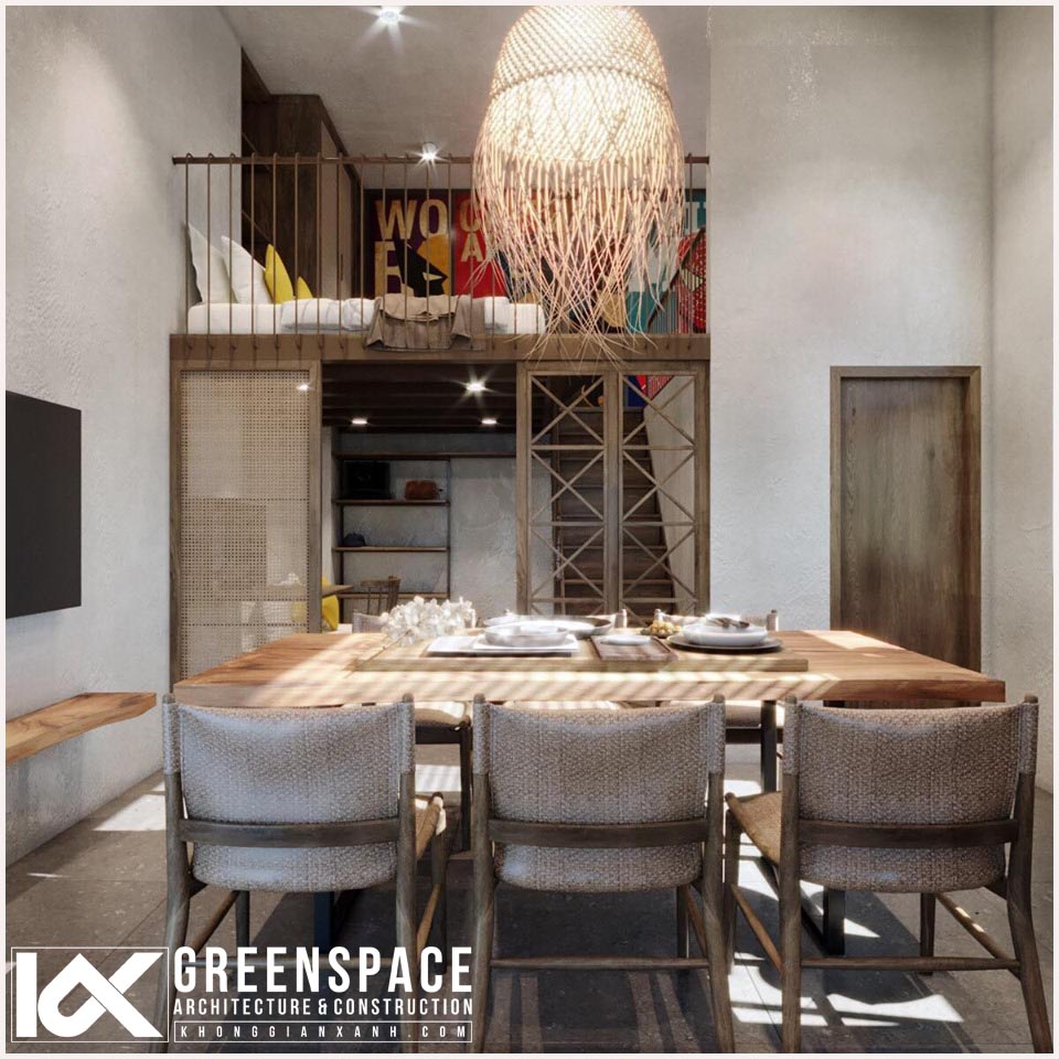 Với khoảng lùi 3,2m do nằm trong khu vực phố cổ, các kiến trúc sư Không Gian Xanh vẫn khéo léo tạo ra không gian phù hợp với như cầu sinh hoạt hằng ngày cũng như không gian phục vụ hoạt động lưu trú cho chủ đầu tư.