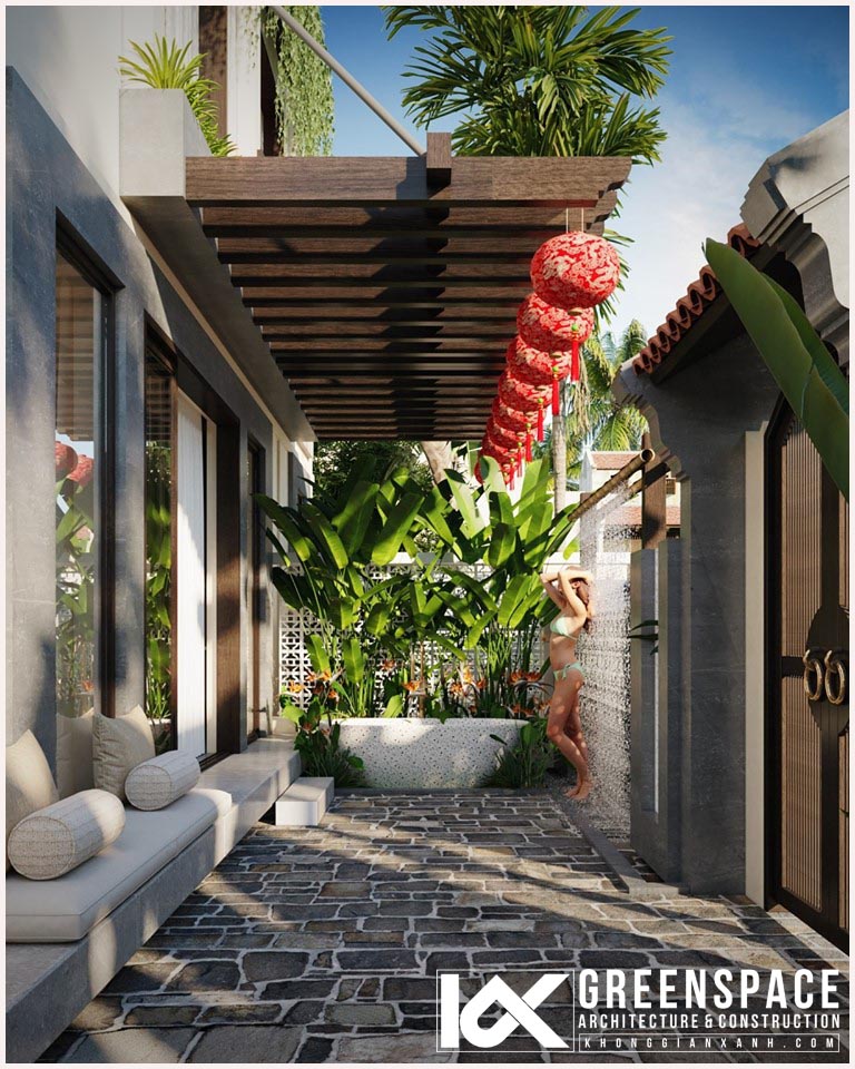 Sự kết hợp hài hòa giữa vẻ ngoài hoài cổ đặc trưng của Hội An và không gian hiện đại phóng khoáng của nội thất bên trong mang đến sự mới mẻ cho không gian sống của chủ đầu tư cũng như thu hút được du khách khi dừng chân.