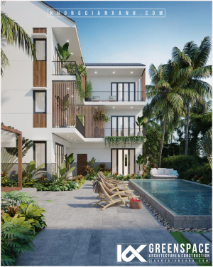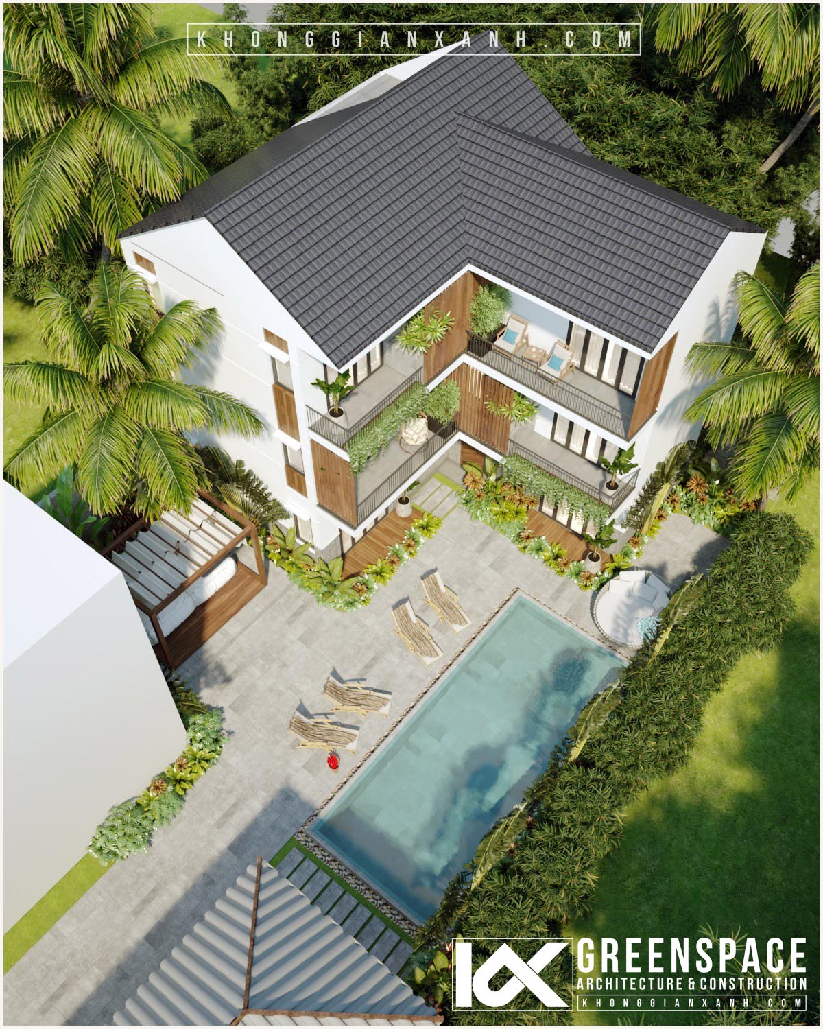Thiết kế biệt thự hiện đại có hồ bơi tại TP. Hội An với diện tích đất 600m2.
