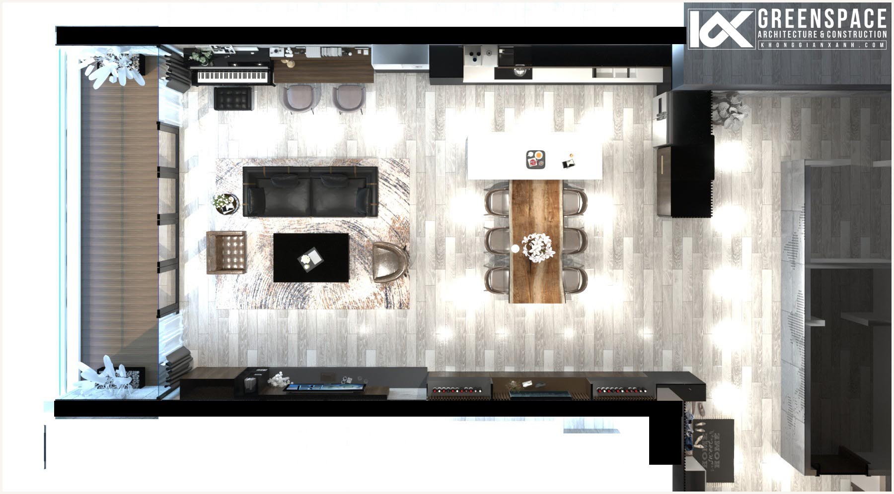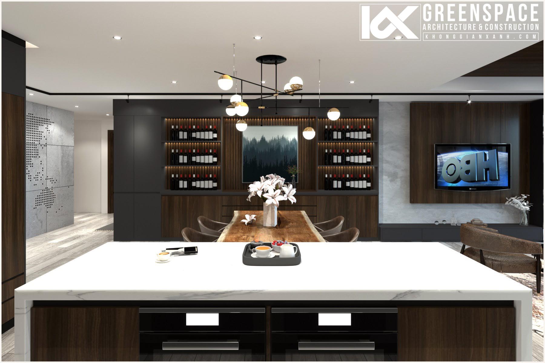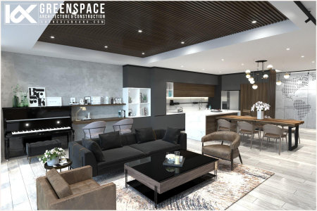 Với diện tích khá rộng (215m2) penthouse được chia thành nhiều khu vực chức năng riêng biệt, rộng rãi tạo sự thoải mái tối đa cho gia chủ.