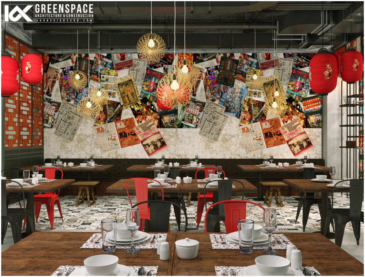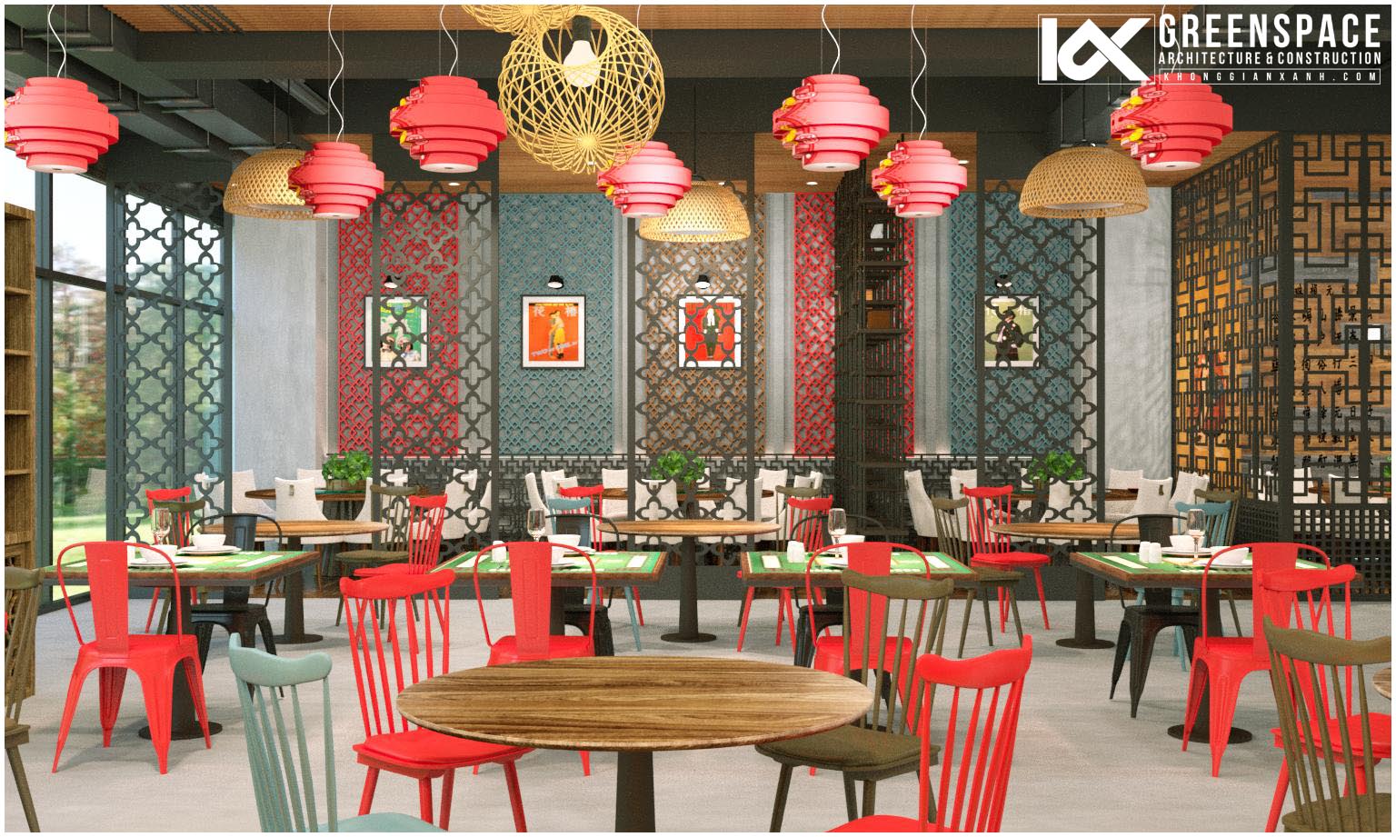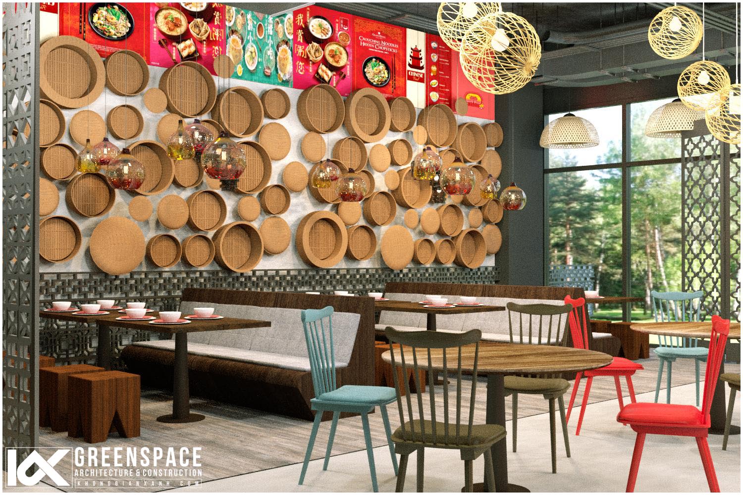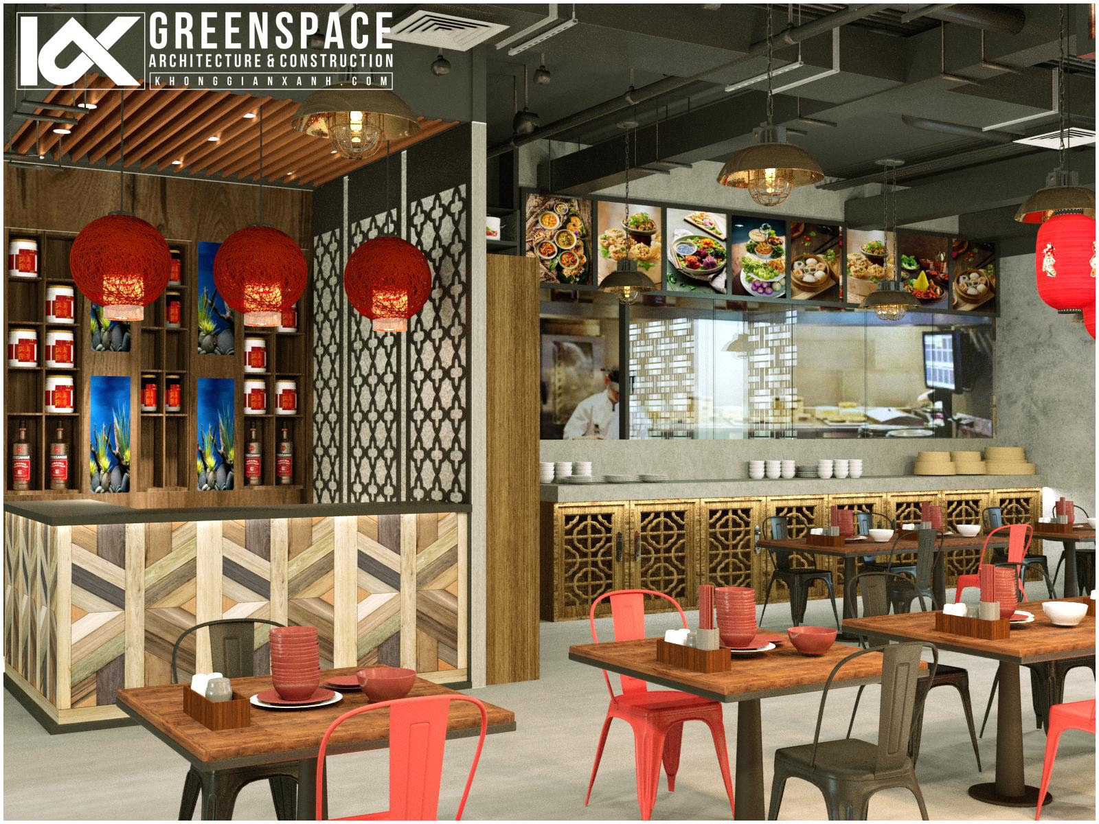 Công trình nhà hàng ẩm thực Trung Hoa do Kiến Trúc Không Gian Xanh thiết kế và cung cấp vật dụng nội thất tại thủ đô Kuala Lumpur Malaysia.