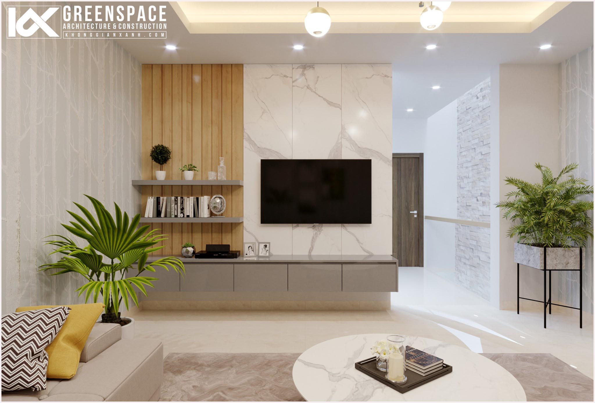 Nội thất nhà phố hiện đại với tông màu tươi sáng kết hợp với màu gỗ mang lại cảm giác ấm áp, dễ chịu được gia chủ yêu thích ngay khi xem phương án.