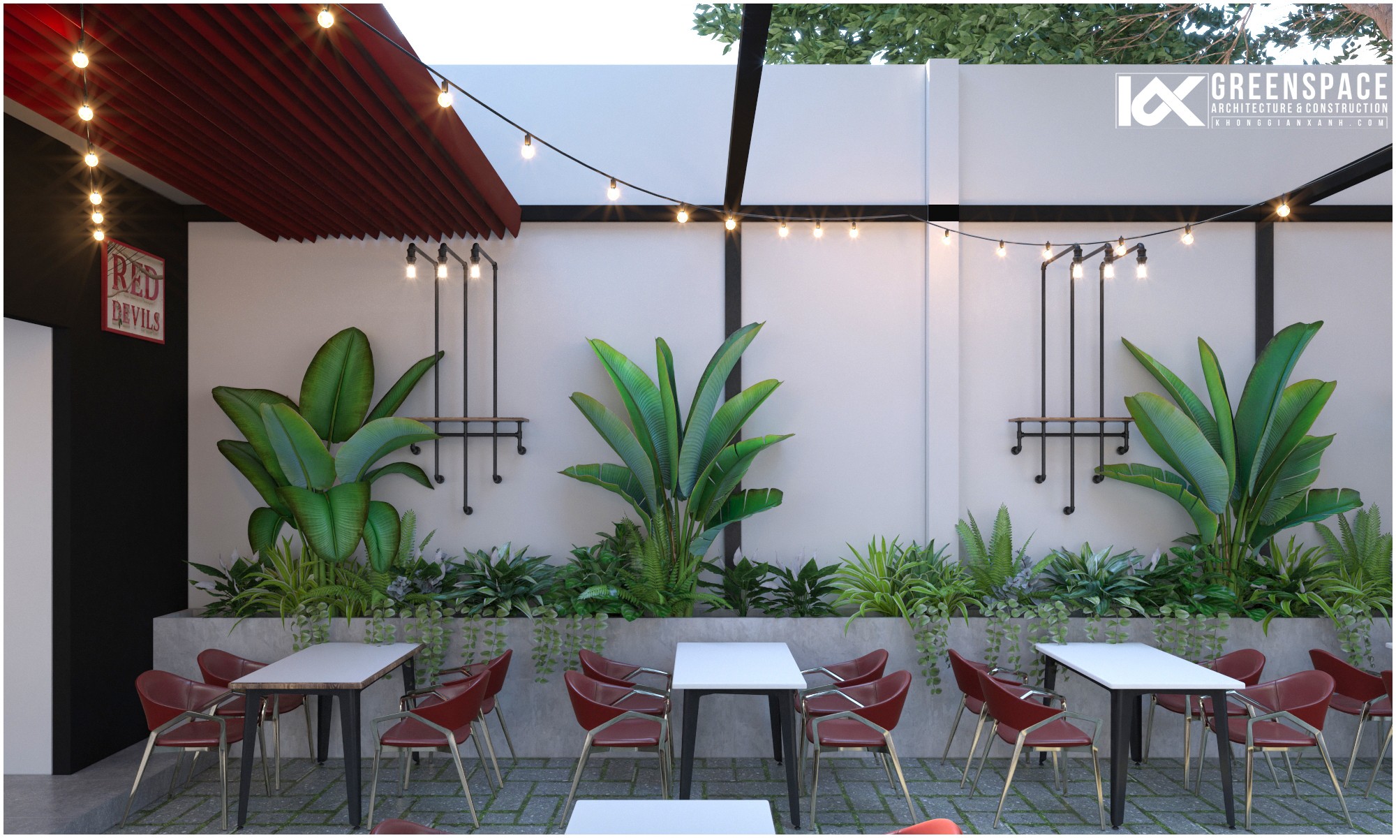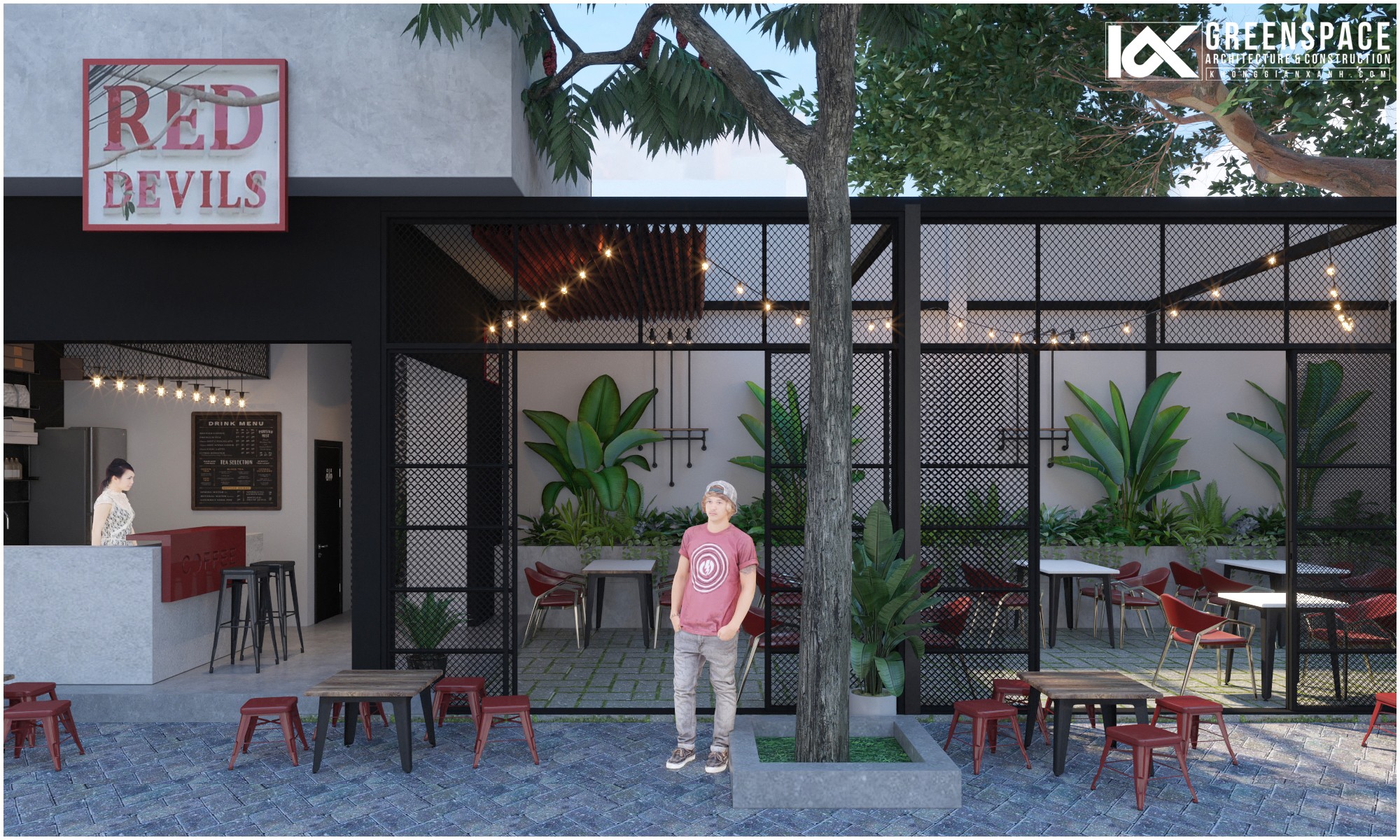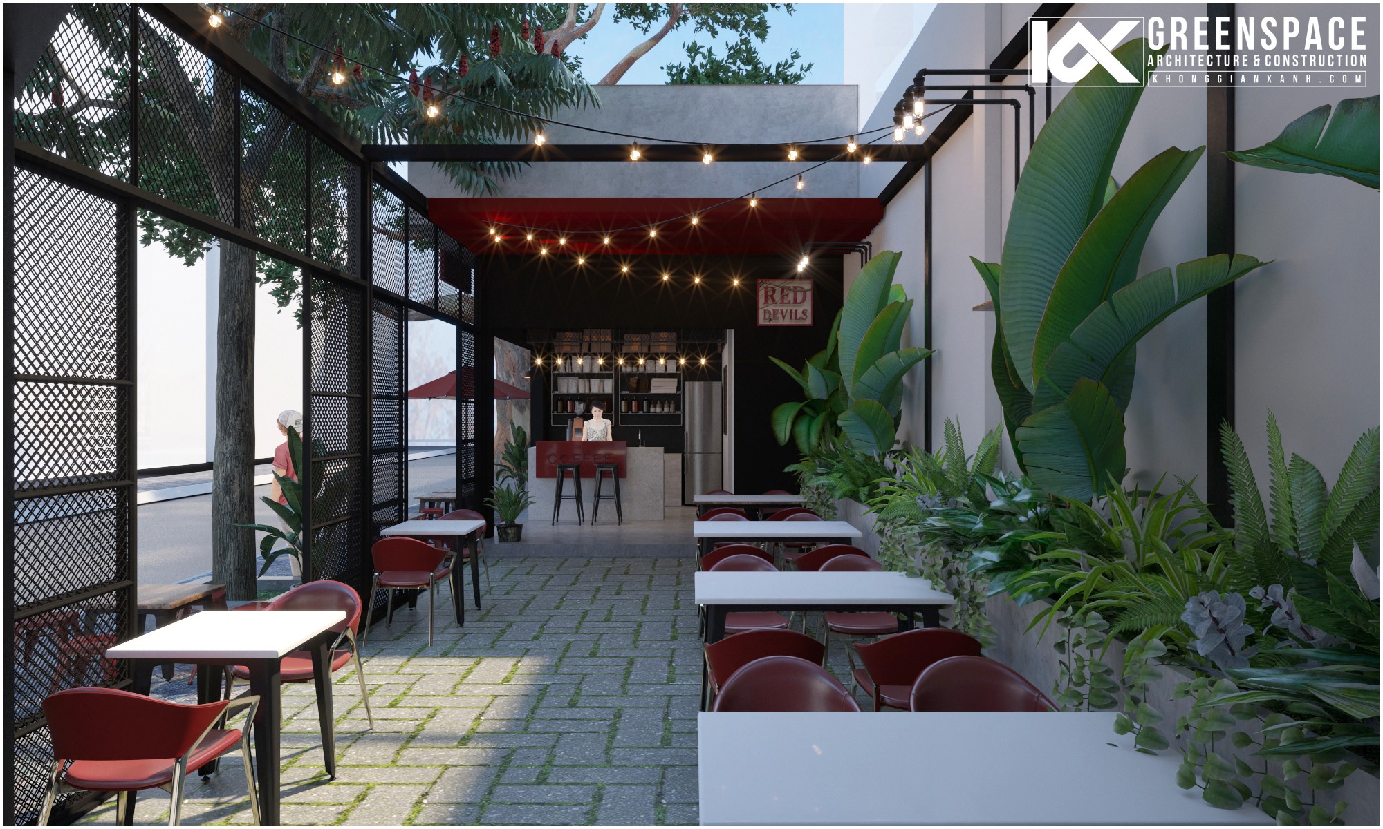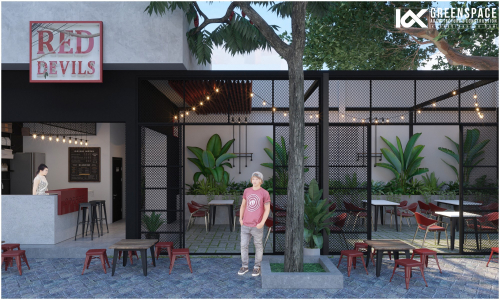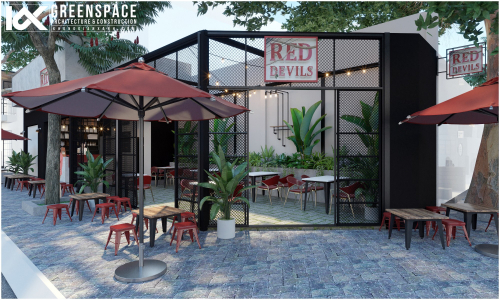 Điều quan trọng nhất trong việc thiết kế cải tạo quán cafe đó là việc cân đối chi phí đầu tư và tính toán kỹ bài toán kinh doanh của quán. Với quy mô của Red Devils, các Kiến trúc sư của Kiến trúc Không Gian Xanh đã nghiên cứu kỹ lưỡng phần hiện trạng cùng với các trao đổi với chủ đầu tư đưa ra những giải pháp tối ưu, hiệu quả cho không gian mới: